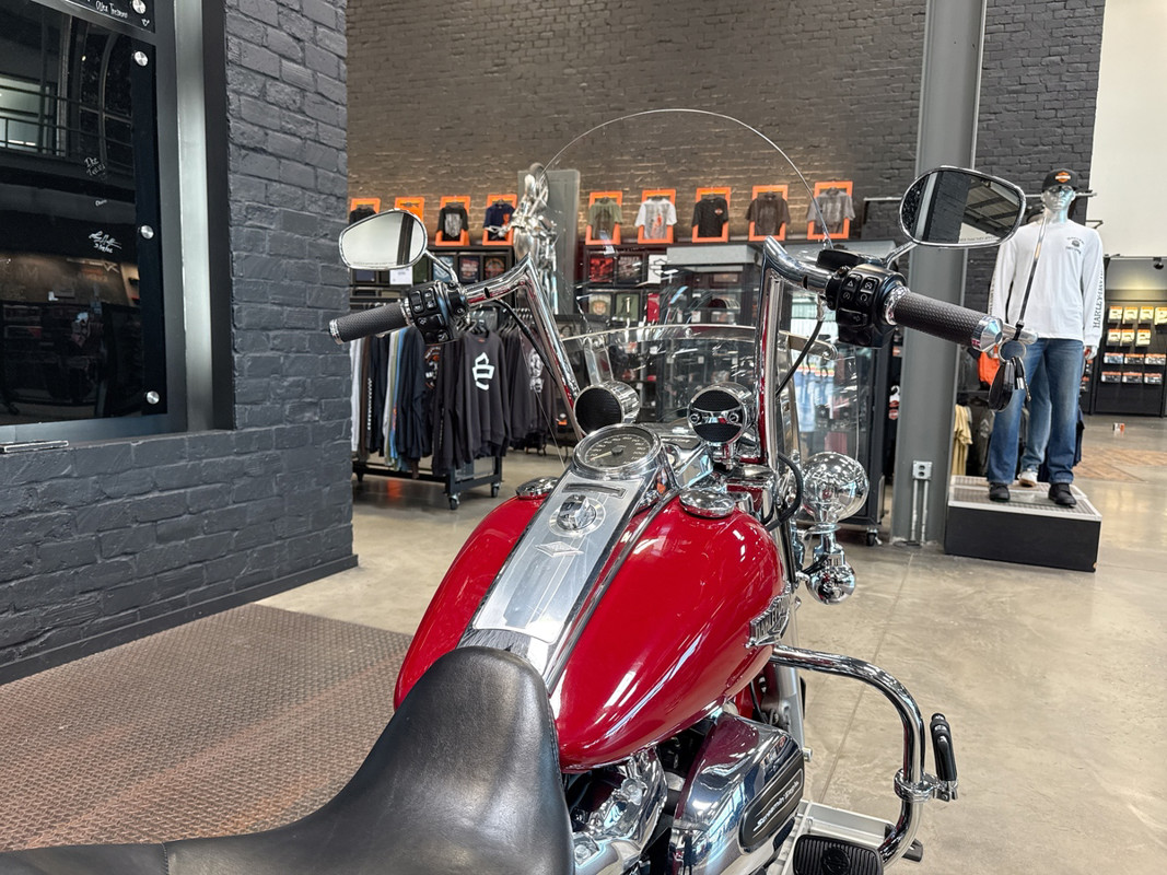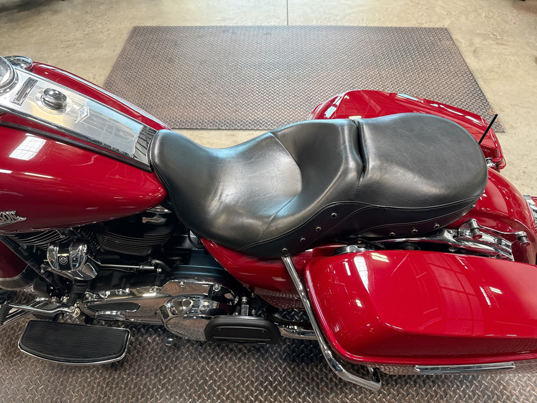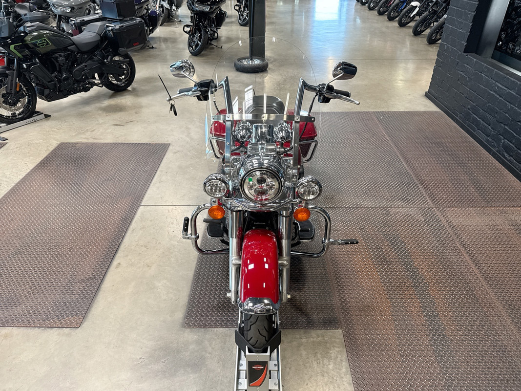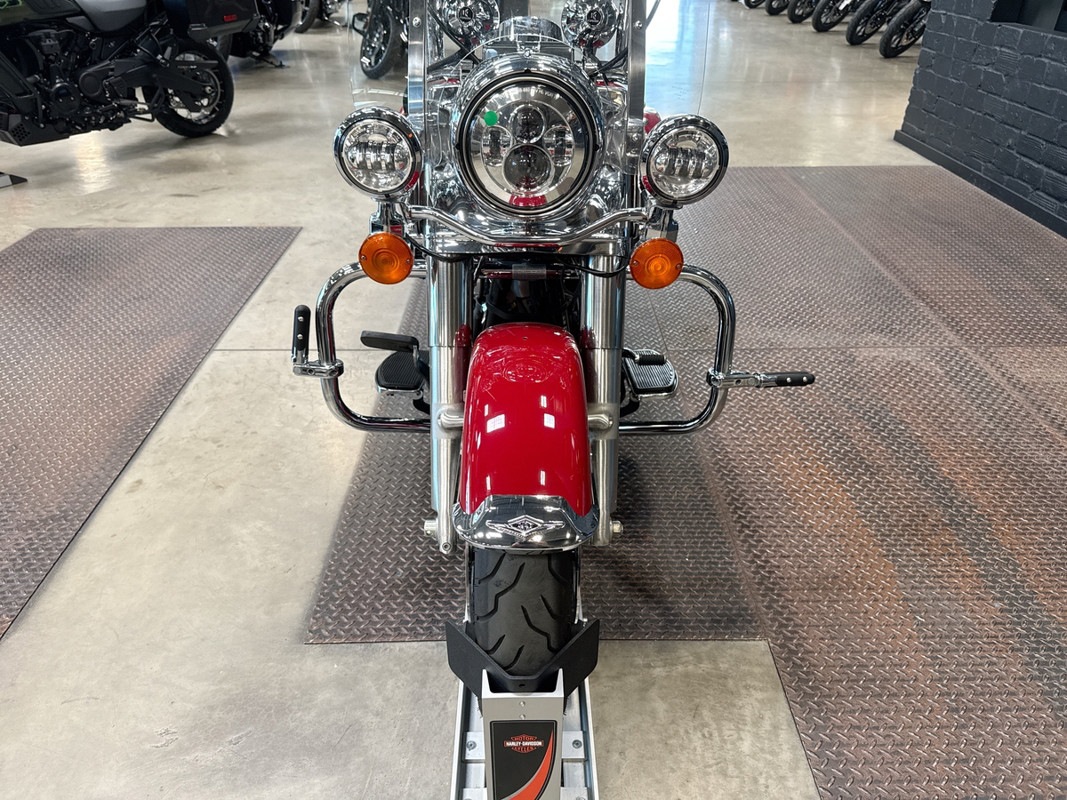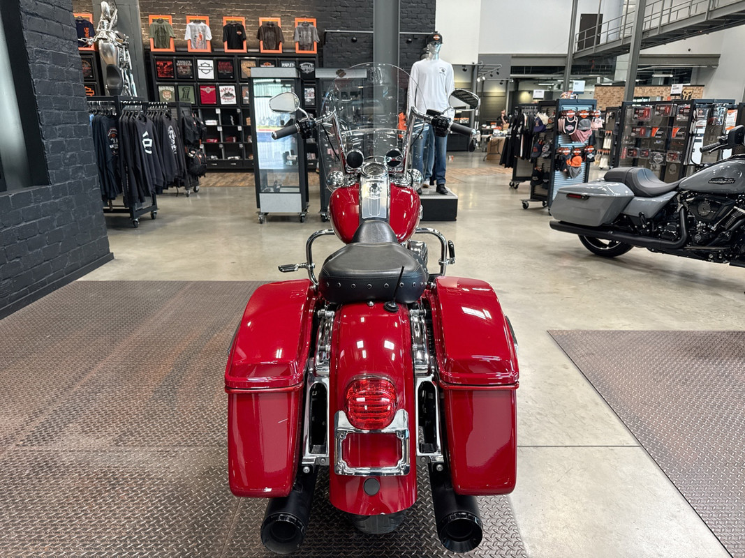 The Billiard Red finish on this Road King is more than just eye-catching—it’s attention-commanding. The color perfectly complements the classic lines and curves of the bike, creating a timeless look that exudes sophistication and boldness on every ride.