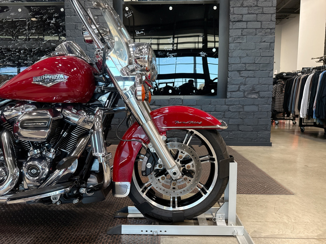 The 2021 Harley-Davidson Road King is a masterpiece of motorcycle engineering and design, capturing the essence of freedom and adventure that defines the open road. With its striking Billiard Red exterior, this used Touring model embodies both style and heritage, a testament to Harley-Davidson's legacy of creating iconic motorcycles.