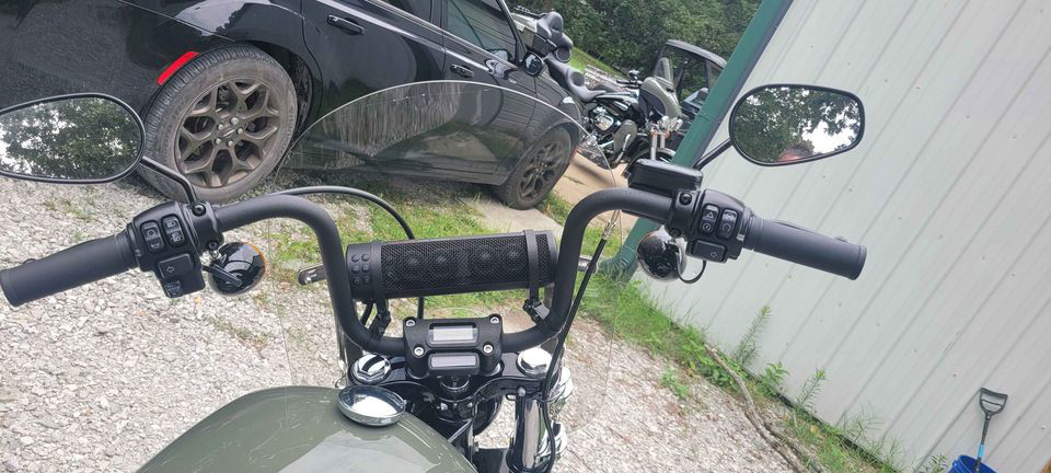 Windshield, crash bars, cruise control, a road thunder bluetooth speaker, Viking saddlebags, Ciro Shock and Awe under glow lights, easy throw adjustable clutch and brake levers and a sissy bar