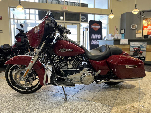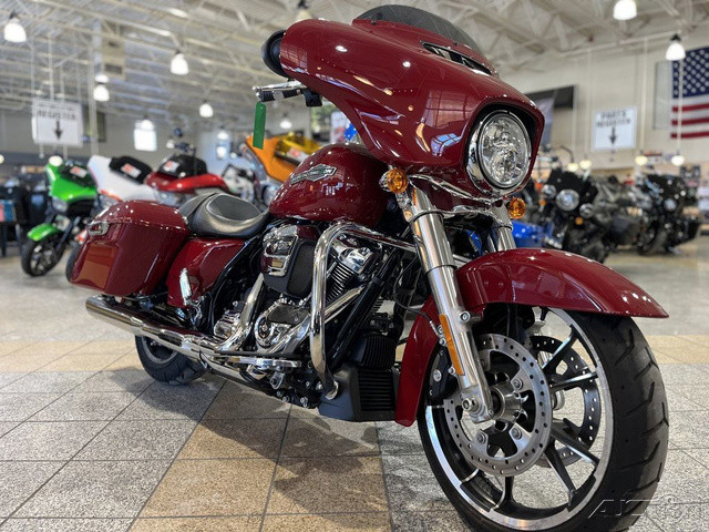 2021 Harley-Davidson® Street Glide®The original stripped-down hot-rod bagger.Features May IncludeTHIS IS THE RIGHT BIKE FORRiders seeking a slammed custom lookHigh-style in town and traveling the long roadMilwaukee-Eight® 107 V-Twin engine and batwing fairingMilwaukee-Eight® 107 Engine A powerful, smooth-running engine with crisp throttle response and a pure, soul-satisfying rumble. Reflex™ Linked Brembo® Brakes with Standard ABSDesigned to help prevent the wheels from locking under braking to assist the rider in maintaining control when braking in a straight-line. ABS operates independently on front and rear brakes to keep the wheels rolling and help prevent uncontrolled wheel lock in urgent situations.Reflex™ Defensive Rider SystemsAn optional collection of technologies that help give you confidence and control in less-than-ideal situations. The systems utilize advanced chassis control, electronic brake control and powertrain technology to assist you with accelerating and braking in a straight line or while in a turn.BOOM!™ BOX GTS INFOTAINMENT SYSTEMAn evolved interface experience that offers a contemporary look, feel and function, with exceptional durability and features designed specifically for motorcycling. Every element is optimized to enhance the rider’s interaction with the bike and connectivity with the world.Batwing FairingThe Batwing fairing has an iconic shape with a sleek, progressive style that delivers smooth air flow and reduced head buffeting.Responsive SuspensionHigh-performing front and rear suspension with easily hand-adjustable rear shocks put you in control of a plush ride.