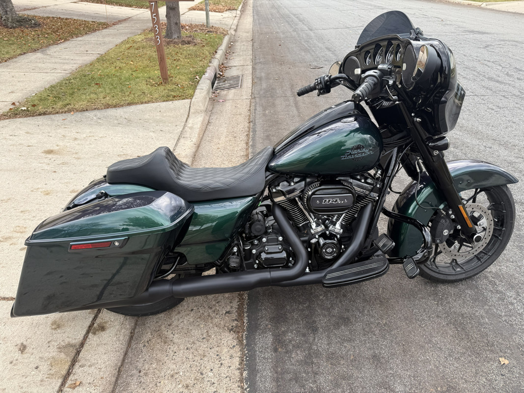 This 2021 Harley-Davidson Street Glide Special (FLHXS) is finished in the highly sought-after Snake Venom paint and has been tastefully upgraded for performance, comfort, sound, and safety. The bike has been maintained with all interval services completed at Harley-Davidson dealerships.