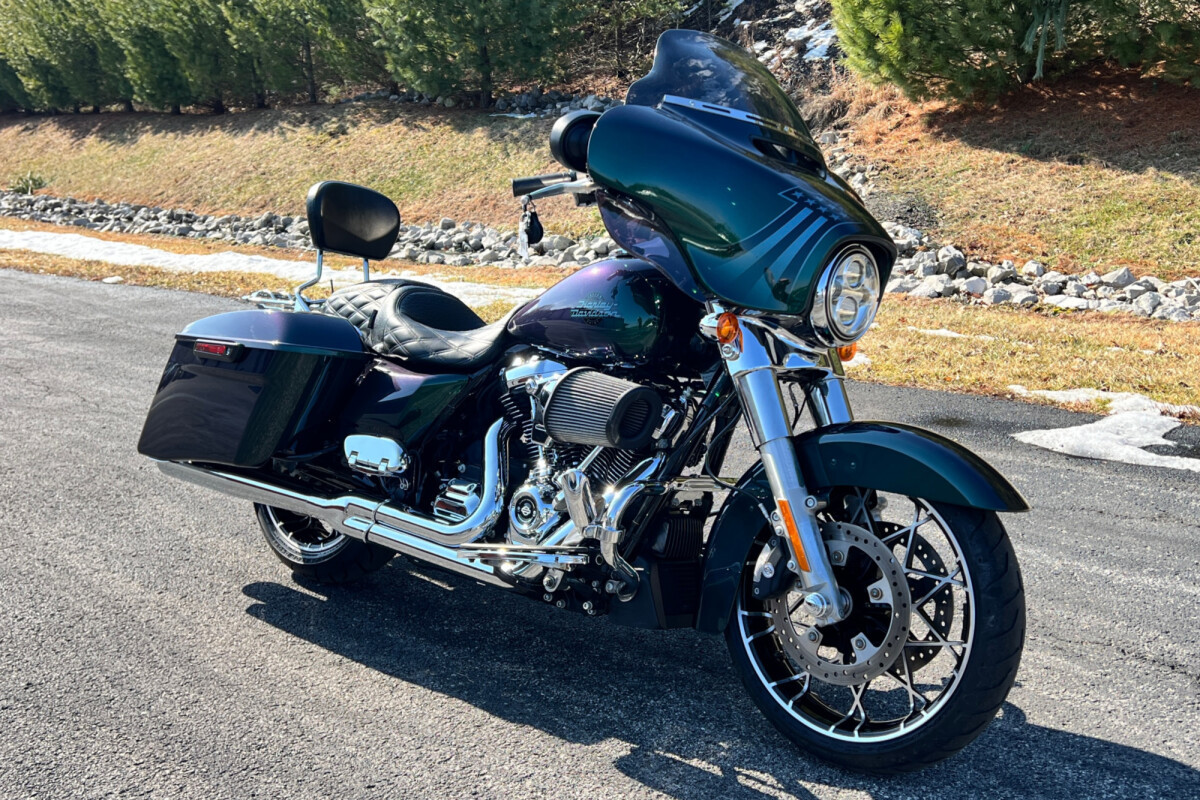 2021 Harley-Davidson Street Glide Special A factory-custom bagger with highway-shredding power, in a blacked-out or chrome finish. Features May Include THIS IS THE RIGHT BIKE FOR Milwaukee-Eight 114 V-Twin engine and Prodigy wheelsNever before offered two-tone paint schemesBright white Daymaker LED headlampMilwaukee-Eight 114 Engine The most displacement in standard H-D Touring models. You get 114 cubic inches of passing and horizon-chasing power. Reflex Linked Brembo Brakes with Standard ABS Designed to help prevent the wheels from locking under braking to assist the rider in maintaining control when braking in a straight-line. ABS operates independently on front and rear brakes to keep the wheels rolling and help prevent uncontrolled wheel lock in urgent situations. BOOM! Box GTS Infotainment System An evolved interface experience that offers a contemporary look, feel and function, with exceptional durability and features designed specifically for motorcycling. Every element is optimized to enhance the rider’s interaction with the bike and connectivity with the world. Gloss Black Prodigy Wheels Black, glossy 19” inch front and 18” rear aluminum wheels so you can roll in with style and attitude. Stretched Saddlebags Designed to accentuate the long and low profile for an iconic, custom look. Blacked-out Everything Blacked-out front forks, handlebars, tank console and exhaust for an aggressive, modern look. Responsive SuspensionHigh-performing front and rear suspension with easily adjustable rear shocks put you in control of a plush ride.