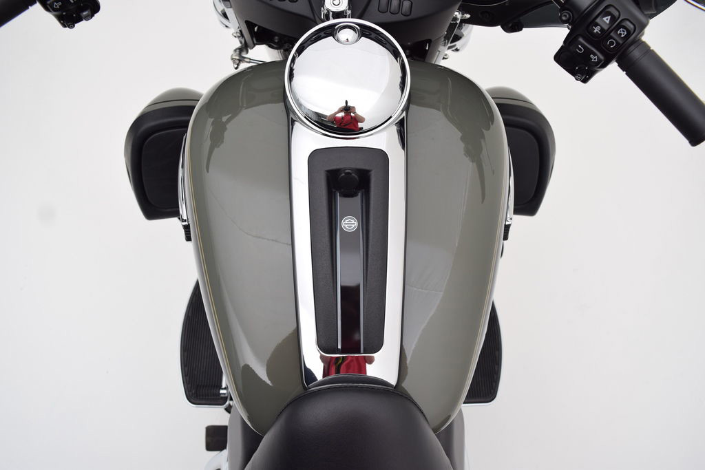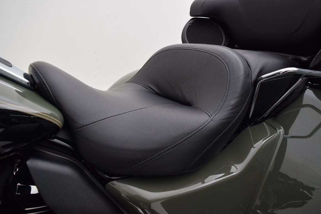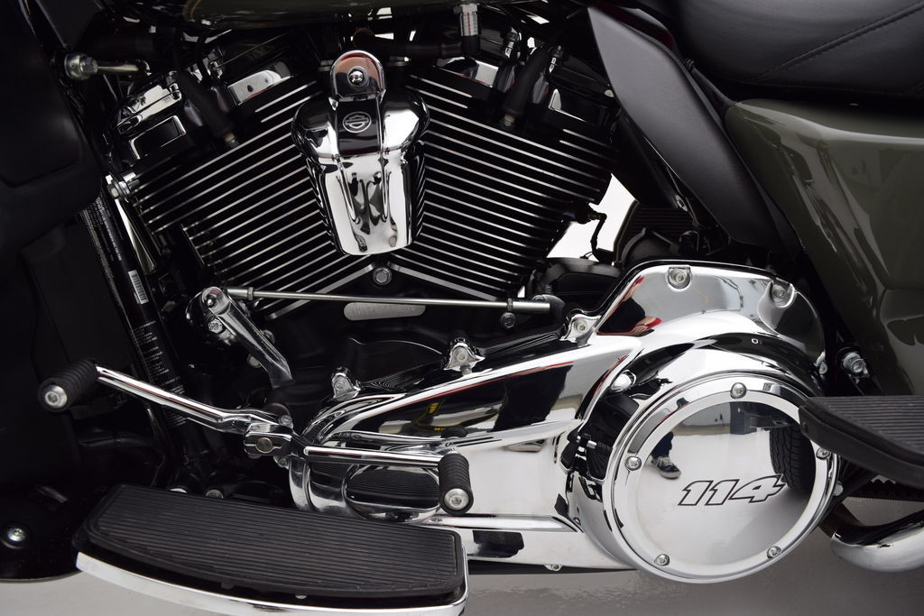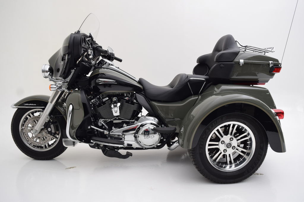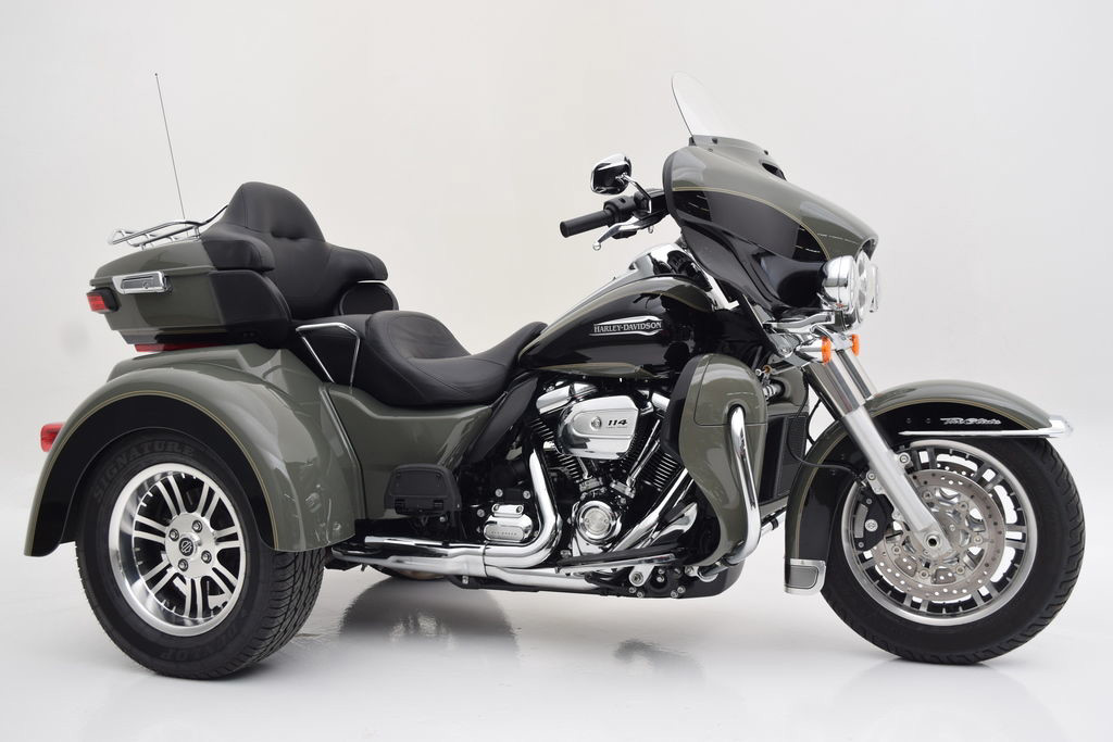 This 2021 Tri Glide® Ultra is finished in rare Deadwood Green and shows just 2,414 miles, making it an excellent low-mileage touring trike. Powered by the Milwaukee-Eight® 114 engine, it delivers strong, smooth performance and confident handling thanks to Harley-Davidson’s factory trike chassis. A full Stage 1 upgrade enhances throttle response, sound, and overall rideability, giving this Tri Glide® a noticeable performance improvement over stock. Built for long-distance comfort, it features premium touring amenities including a batwing fairing with infotainment system, spacious trunk and saddlebags, passenger backrest, cruise control, and a plush touring seat. Well cared for and tastefully upgraded, this Tri Glide® Ultra offers the perfect combination of comfort, performance, and unmistakable Harley-Davidson style—ready for the open road and long miles ahead.