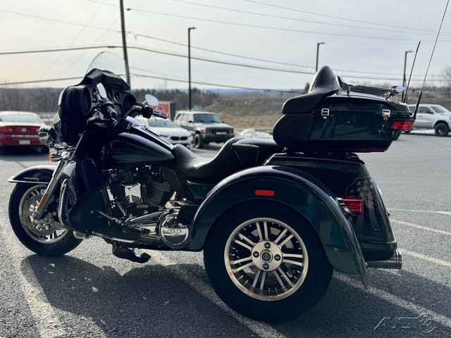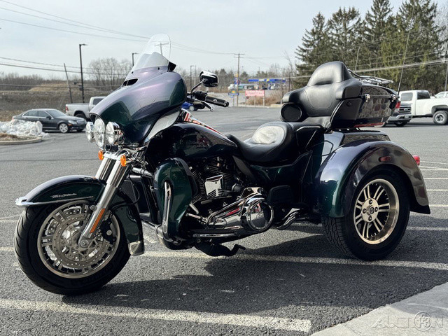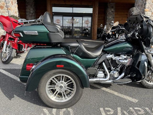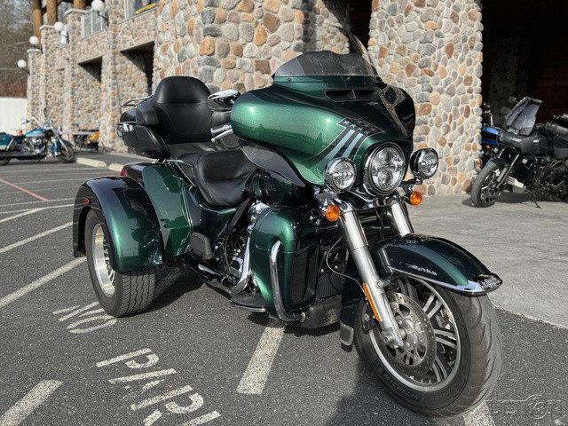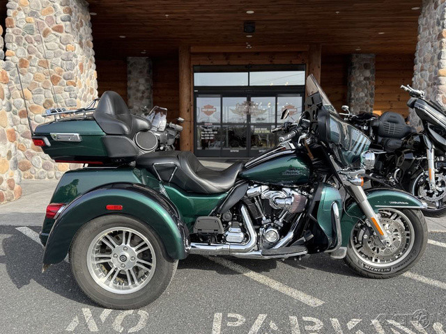 2021 Harley-Davidson® Tri Glide® UltraThe paragon of comfort. Locked-and-loaded with premium tour features and chrome accessories.Features may include:THIS IS THE RIGHT BIKE FORRiders seeking a one-of-a-kind 3-wheel touring experienceBold styling with premium paint and Tomahawk™ wheelsTwin-Cooled™ Milwaukee-Eight® 117 engine and Kahuna™ controlsTWIN-COOLED™ MILWAUKEE-EIGHT® 114 ENGINEThe most displacement in standard H-D® Touring models. You get 114 cubic inches of passing and horizon-chasing power.REFLEX™ LINKED BREMBO® BRAKES WITH STANDARD ABSDesigned to help prevent the wheels from locking under braking to assist the rider in maintaining control when braking in a straight-line. ABS operates independently on front and rear brakes to keep the wheels rolling and help prevent uncontrolled wheel lock in urgent situations.BOOM!™ BOX GTS INFOTAINMENT SYSTEMAn evolved interface experience that offers a contemporary look, feel and function, with exceptional durability and features designed specifically for motorcycling. Every element is optimized to enhance the rider’s interaction with the bike and connectivity with the world.HIGH PERFORMANCE SUSPENSIONPremium Harley-Davidson® touring suspension technology is calibrated specifically for Trike models, delivering a smooth and responsive ride.6-SPEED CRUISE DRIVE® TRANSMISSIONProvides smooth, quiet shifting and reduces engine speed on the highway, so you get a better match between engine RPM and road speed.TRUNK AND KING TOUR-PAK® STORAGEThe integrated trunk offers 4.4 cubic feet and 50 pounds of storage capacity, while the injection-molded Tour-Pak® luggage carrier adds an addtional 2.4 cubic feet storage capacity, combined giving you 6.8 cubic feet of storage.DAYMAKER® LED HEADLAMP AND LED FOGLAMPSDarkness–defying headlight so you can see and be seen.BATWING FAIRING & SPLITSTEAM AIR VENTDesigned to deliver smoother airflow and reduced head buffeting with a pressure-equalizing duct on the front.