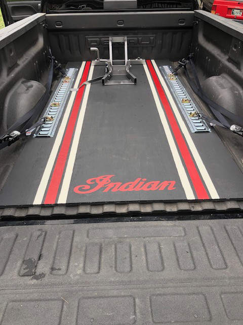 • Custom Made Transport/Docking Pad: Custom Made ¾” Marine Grade Plywood Transport Pad w/Custom Indian Graphic Paint, E-Track, Tie Down Straps, And Indian Specific “WheelDock” Wheel Chock