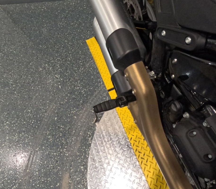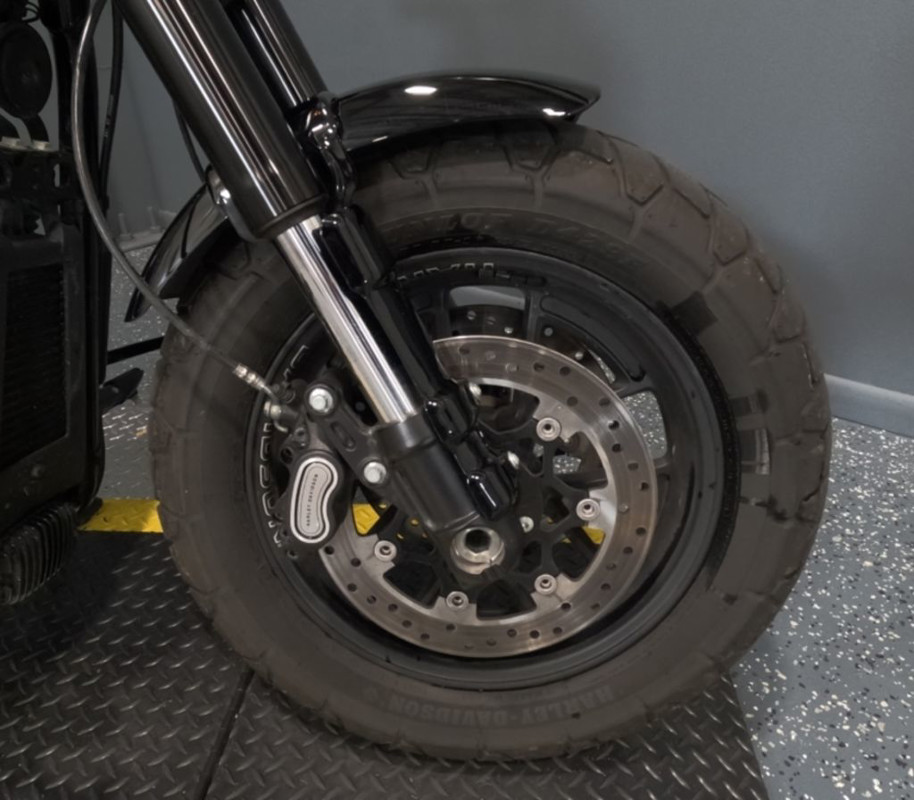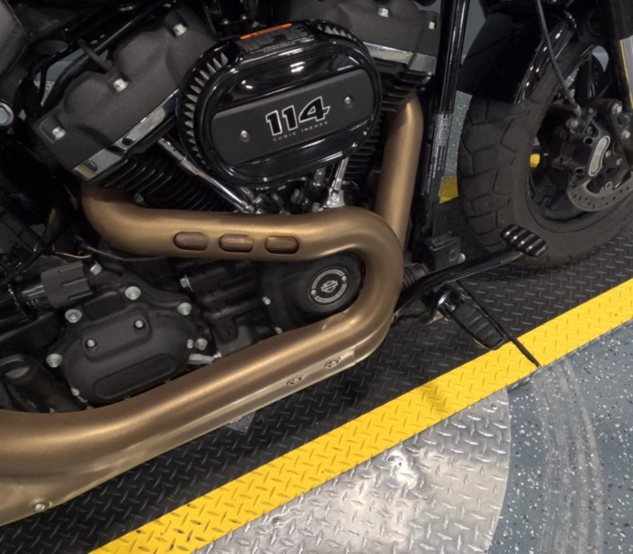 The design of the Fat Bob® 114 is both modern and muscular, with a bold stance that commands attention. The blacked-out finishes and distinctive LED headlamp give it a contemporary edge, while the wide tires and unique tank graphics add to its rugged appeal.