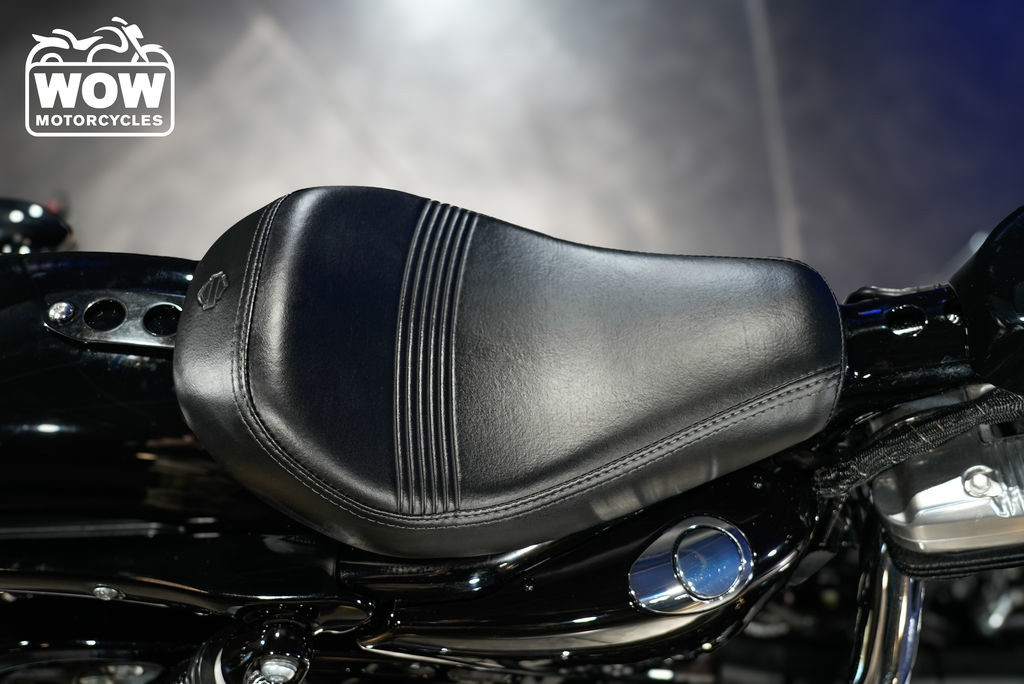 The 2022 Harley-Davidson Forty-Eight offers a classic Sportster profile with a low-slung peanut tank and fat front tire. It combines vintage styling with modern performance for a distinctive riding experience. Engine: Air-cooled Evolution V-Twin, 1202 cc, 60 hp, 73 lb-ft torque. Transmission: 5-speed. Dimensions: Wheelbase 61.3 in, seat height 27.3 in, dry weight 551 lb. Chassis: Mild steel tubular frame, front suspension 49 mm fork with 3.6 in travel, rear dual shock with 1.5 in travel. Brakes: Single 300 mm disc with dual-piston caliper front, single 292 mm disc with single-piston caliper rear. Tires: 130/90B16 73H front, 150/80B16 77 rear.