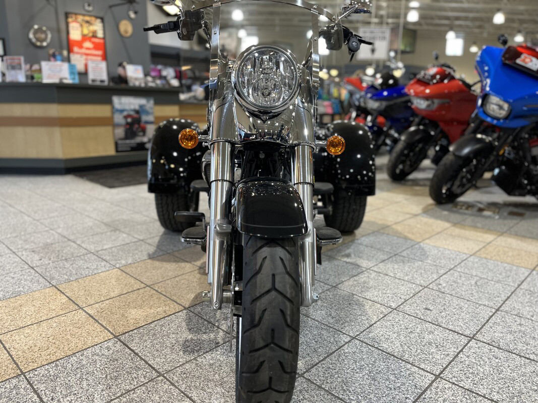 Stripped-down custom style meets the confidence of three wheels. You get braking enhancements like traction control and hill hold. And plenty of power, thanks to a Milwaukee-Eight 114 engine.