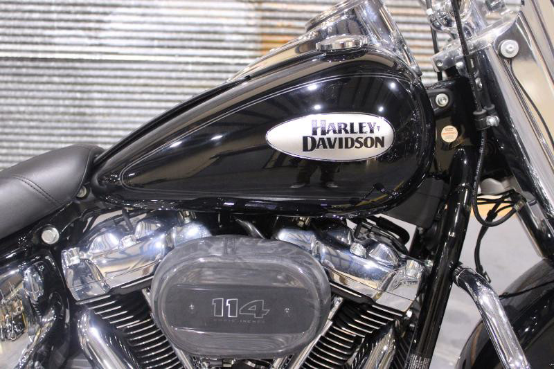 The 2022 Harley-Davidson Softail combines classic styling with modern engineering, presenting an exquisite motorcycle that embodies the spirit of freedom, adventure, and craftsmanship. This used motorcycle, finished in a striking Black with Pinstripe exterior, projects a bold and assertive look that's perfect for riders who appreciate the heritage and iconic status of Harley-Davidson.