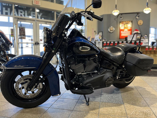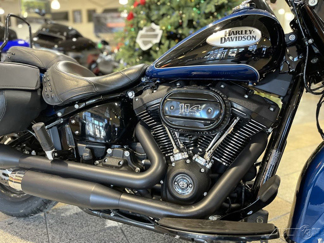 2022 Harley-Davidson® Heritage Classic 114The quintessential American cruiser. Showstopping vintage details and pure rock and roll style.Features may include:THIS IS THE RIGHT BIKE FORRiders ready to chase excitement across state linesHighway riding with full fenders and detachable windscreenMilwaukee-Eight® 114 V-Twin engine and steel laced wheelsMILWAUKEE-EIGHT® BIG TWIN ENGINEA powerful, cool-running engine with crisp throttle response and a pure, soul-satisfying rumble.LOCKABLE AND SEALED SADDLEBAGSA sleek look on the outside and roomy on the inside with enough space to stash your riding essentials. The lids open with one touch.DETACHABLE WINDSCREENGo from touring to cruising in a heartbeat. Leave the screen on for a clean envelope of air over the long haul. Or remove it in seconds for a completely new look and ride.HIGH PERFORMANCE REAR MONO SHOCKEasily adjustable mono-shock rear suspension allows for dynamic cornering capability while preserving the hardtail look.