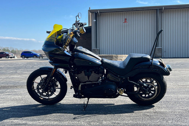 2022 Harley-Davidson® Low Rider® SA blacked-out, factory custom performance cruiser.Features may include:THIS IS THE RIGHT BIKE FORRebels seeking a now classic West Coast StyleAggressive riding with sport bike agility and handlingRiders who like to push their bike to the limitsPOWERTRAINMILWAUKEE-EIGHT® 117 V-TWINHigh-performance engine with precision oil/air cooling is the new pinnacle of torque and displacement in a factory-installed Harley-Davidson® powertrain. And if that’s not enough, boost performance further with Dealer-installed Screamin’ Eagle® Performance Parts Stage Upgrades from Harley-Davidson® Genuine Motor Parts & Accessories.WEST COAST STYLINGBLACKED OUT WITH SOLO SEATThe powertrain, primary cover, triple clamps, top clamp, rear fender supports and tank console are finished in Wrinkle Black; the derby cover, intake, lower rocker covers and handlebar riser are Gloss Black. The handlebar is Satin Black. The forks are anodized black. Mufflers and exhaust shields are Jet Black. An everything black overload, paired with a deep solo seat for lone-wolf attitude.HANDLEBARSOne-inch moto handlebar mounted on four-inch risers gives the overall look of the bike a Coastal style element that puts the rider in an aggressive posture on the bike.CONSOLELow-profile textured black tank console with FXLRS badge covers the fuel tank weld and replaces the console with gauges used on Low Rider® S 114 model.