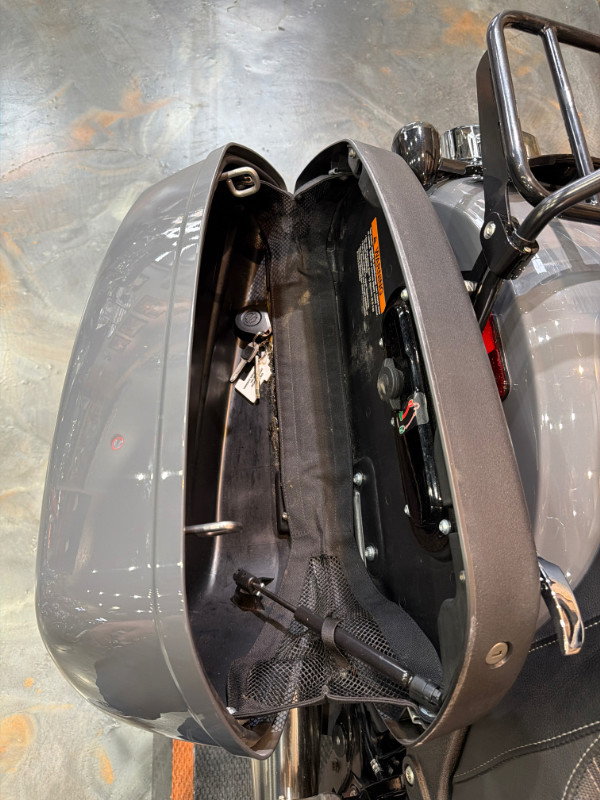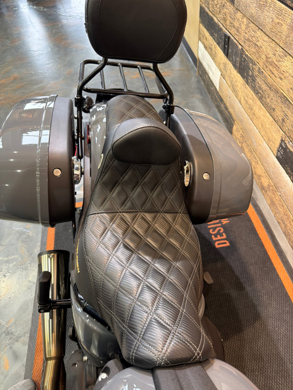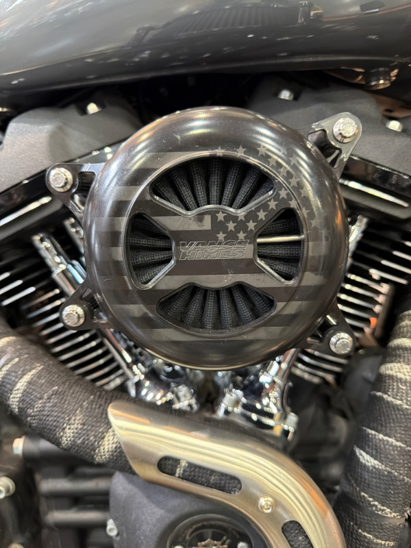 Vance and Hines 2-1 Exhaust, Thrashin Risers and Clamp, H-D Tuner, H-D Grips, Vance and Hines Air Cleaner, Custom Stitched Saddlemen Seat, Black Detachable Backrest w/Luggage Rack, LED Smoked Tailight, LED Smoked Rear Turn Signals, Curved License Plate Frame, Rockford Fosgate Speakers, KlockWerks Windshield, LED Smoked Front Turn Signals, Thrashin Footpegs, Thrashin Shifter Peg, Frame Mounted Fairing, ABS, LED Headlamp, Security, Cruise Control, Blacked Out Engine, Inverted Front End, Removable Saddlebags, and more.