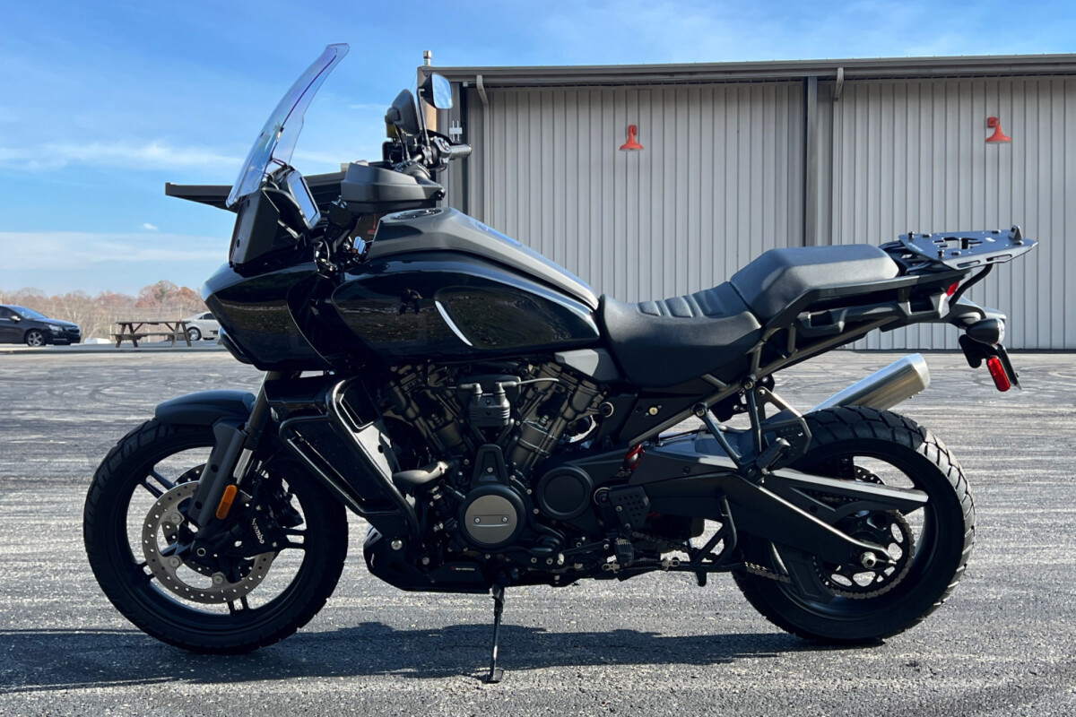 2022 Harley-Davidson Pan America 1250 Special The Pan America 1250 Special motorcycle is our premier two-wheel multi-tool built to endure, designed to explore, and engineered for adventure. Features may include: THIS IS THE RIGHT BIKE FOREnthusiasts who require top-of-the-line comfort and performanceFor riders who see touring as detouring – on road and offRiders looking for power, tech, and capability – that can be used everyday with comfort and controlAll-new Revolution Max 1250 EngineFor A New Generation of Iconic Bikes The next chapter in a century of legendary V-Twins is here. Revolution Max is a liquid-cooled powertrain with 150 horsepower, full of ample torque, and a surging powerband tuned to maximize rider control. Dual Purpose Powertrain The Revolution Max 1250 is a structural component of the motorcycle chassis, eliminating a traditional frame —which significantly reduces overall weight and keeps handling taut. This is performance you can feel, with the center of gravity low and the chassis super rigid. Peak Performance Where It Counts Double Overhead Camshafts (DOHC) facilitate higher peak horsepower, and independent Variable Valve Timing (VVT) broadens the overall powerband and improves torque management. All this to say you’ll have as much low-end acceleration off the line and high-RPM horsepower you can twist. Adaptive Ride HeightRevolutionary Suspension Adaptive Ride Height makes its debut on the Pan America 1250 Special. This factory-installed option unlocks confidence you can feel by lowering seat height when stopped, and maintaining a constant, optimum suspension sag at speed by adjusting preload while continuously sensing weight inputs. Semi-Active Front & Rear Suspension 190mm (7.48 inches) travel on Showa BFF (Balance Free Forks) fronts and a BFRC (Balanced Free Rear Cushion-lite) coil-over rear shock with electronic preload control and semi-active damping. The rear suspension incorporates a linkage system connecting the shock, swingarm, and frame which provides a progressive feel through the stroke. Different by Design H-D design and engineering teams have crafted a vision guided by utility, rooted in the spirit of iconic American off-road vehicles. In a landscape of bikes that are achieving uniformity, Pan America is a rugged take where function feeds form in a package that is uniquely Harley-Davidson. All Terrain Long Hauler Informed by H-D’s touring legacy, Pan America is designed to maintain high-speed ride and handling performance even when at the limit of its luggage and weight capacity. Refined, capable and intuitive, Pan America is a motorcycle that stays composed and confident no matter how hard you push it.