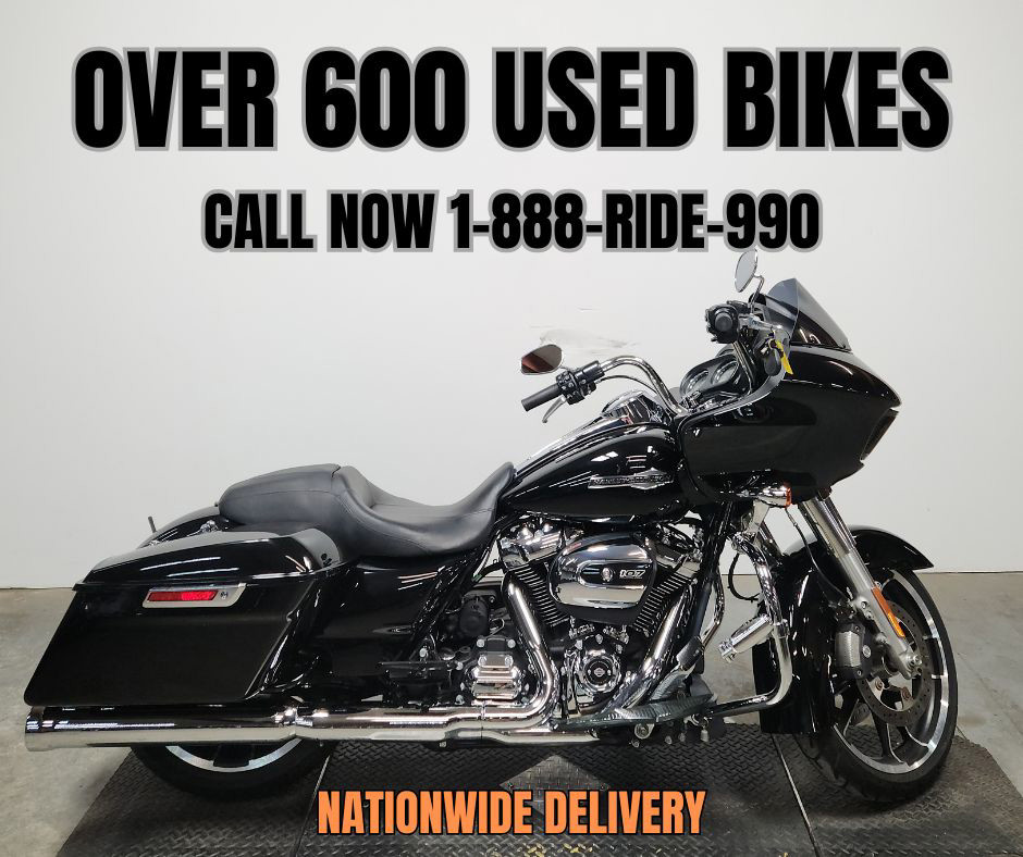 USED HARLEY DAVIDSON ROAD GLIDE FOR SALE WITH ONLY 4,155 MILES! THAT'S RIGHT, ONLY 4,155 MILES AND OVER $2,000 IN EXTRAS! HIGHWAY PEGS, UPGRADED FLOOR BOARDS, AIR HORN, OVERSIZED L.E.D SCREEN, BLUETOOTH STEREO, NAVIGATION SYSTEM, CRUISE CONTROL, SECURITY SYSTEM, AND THE DUAL COBRA EXHAUST SOUNDS GREAT! THIS ONE IS A PERFECT 10 OUT OF 10! THE 107 CUBIC INCH MILWAUKEE 8 MOTOR RUNS STRONG! JUST SERVICED AT DEALERSHIP, INSPECTED, ALL FLUIDS CHANGED, EVERYTHING WORKS, NEEDS NOTHING! SOLD NEW FOR OVER $25,000, THIS PERFECT, LOW-MILEAGE ROAD GLIDE IS A DEAL!