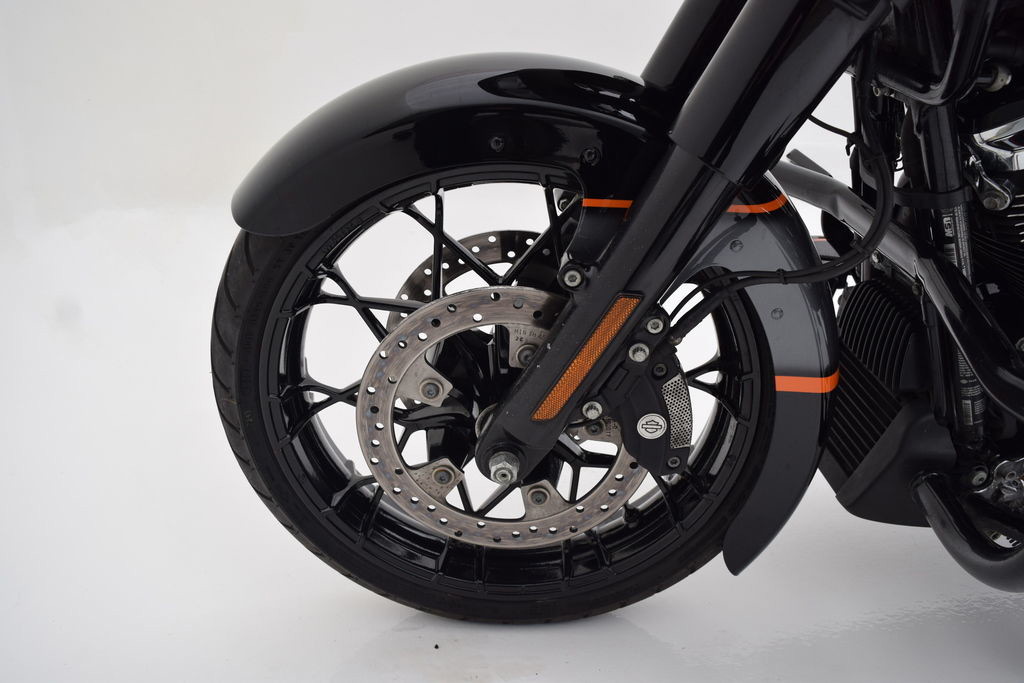 This 2022 Harley-Davidson® FLTRXS – Road Glide® Special is a fully loaded touring machine finished in striking Apex Black and showing 37,519 miles. Built for long-haul comfort and aggressive style, this Road Glide Special stands out with a long list of premium upgrades.Power and tone come from a Krome Werks exhaust system, delivering a deep, commanding sound, while upgraded handlebars and grips provide improved ergonomics and rider control. The lighted windshield adds both function and attitude, enhancing nighttime visibility and style.Touring capability is taken to the next level with a paint-matched tour pack with luggage rack, offering ample storage without sacrificing the bike’s sleek look. A paint-matched extended front fender further elevates the custom appearance, giving the bike a long, low, aggressive stance.Additional upgrades include an engine guard, all upgraded foot controls for enhanced comfort, and Rockford Fosgate saddlebag speakers, delivering premium audio quality on every ride.This Road Glide Special is a perfect blend of performance, comfort, and custom style—ready to hit the open road in true Harley-Davidson fashion.