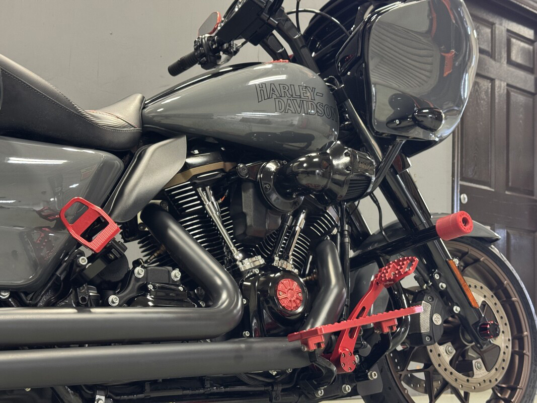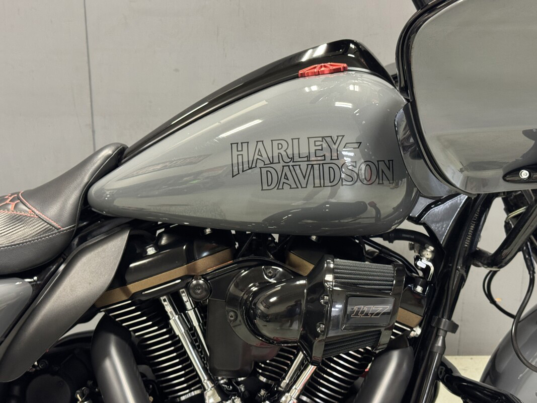 The sleek Road Glide ST model projects more menace than ever and backs it up with the street-scorching power of the Milwaukee-Eight 117 powertrain. West Coast styling elements and black-and-bronze finishes set this bike apart from the performance bagger crowd. Undiminished rider comfort and the handling prowess of the shark nose fixed fairing appeals to a rider who wants to make quick work of the open road. Meet the new breed of speed from Harley-Davidson.