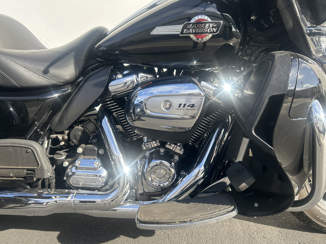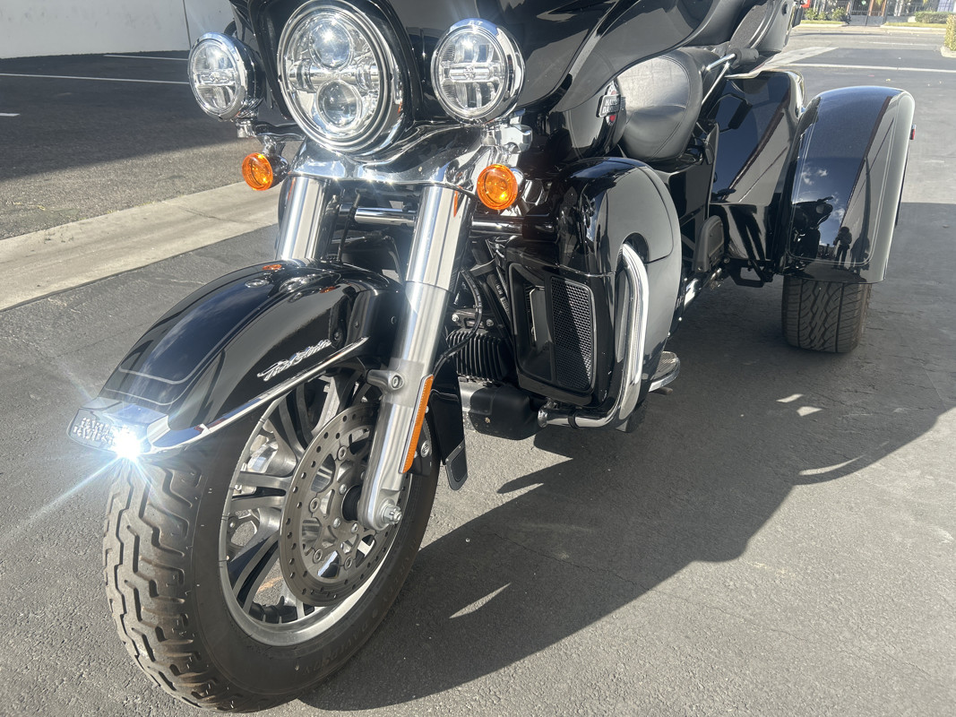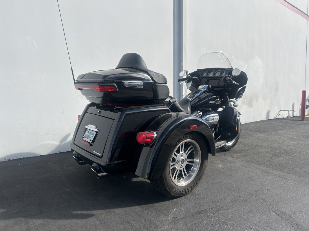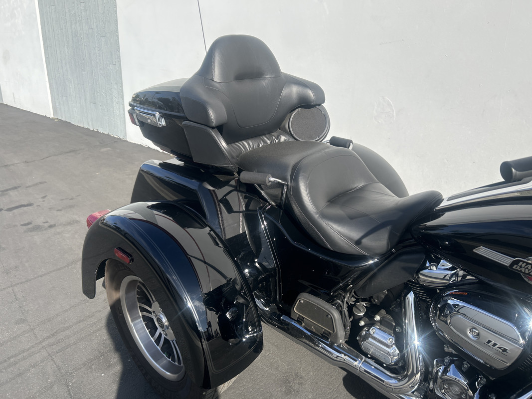 Your next ride is just waiting and the Tri-Glide is what you need to make it happen! * Harley OEM Vivid Black Paintjob * 114 Cubic Inch Harley Milwaukee 8 Motor * 6 Speed Transmission * Reverse Gear * Stock Air Cleaner * Chrome Engine Guad with Leg Guards * Tab Performance DUal CHrome Exhaust * Neck Stabilizer
