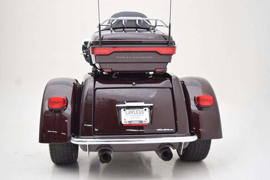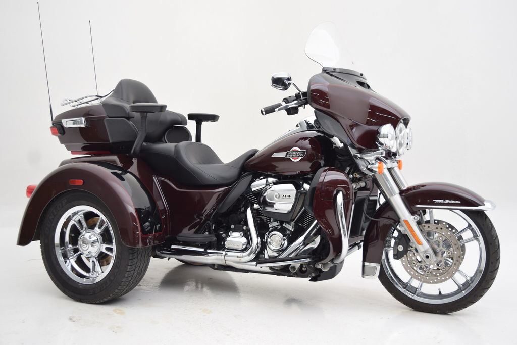 Take the open road in comfort and style with this 2022 Harley-Davidson FLHTCUTG Tri Glide Ultra finished in a striking MIDNIGHT CRIMSON / VIVID BLACK paint scheme. With 23,661 miles, this three-wheel touring machine is built for riders who want legendary Harley-Davidson performance combined with unmatched stability and long-distance comfort.This Tri Glide® Ultra comes equipped with several desirable upgrades that enhance both style and ride quality. A set of upgraded wheels gives the trike an even more commanding stance, while the KLOCK WERKS windshield helps improve airflow and rider comfort on long highway rides. Heated grips keep your hands comfortable when the temperature drops, and lower fairing lights add extra visibility and a premium custom touch.Passenger comfort hasn’t been overlooked either, thanks to the addition of passenger armrests, making long trips more enjoyable for your co-rider. Finishing off the rear is a chrome bumper that adds both protection and a sharp custom look.Powered by the Milwaukee-Eight® engine and loaded with touring essentials like a premium infotainment system, spacious trunk and saddlebags, and plush seating, this Tri Glide® Ultra is ready for the next adventure.If you're looking for a well-equipped, great-looking trike that’s built for long-distance cruising, this 2022 Tri Glide® Ultra is ready to roll.