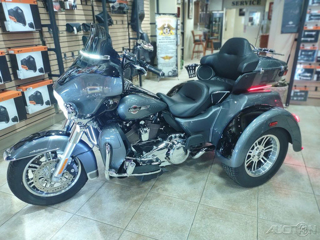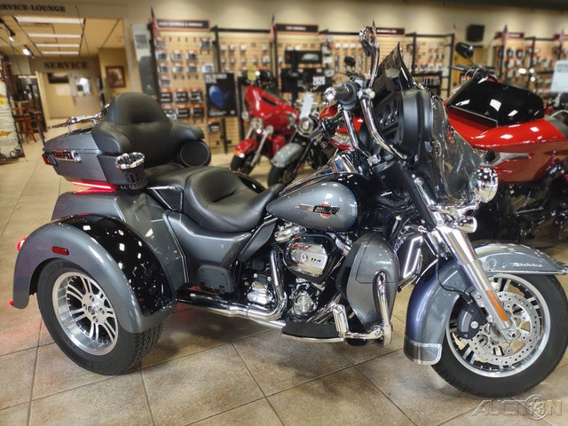 2022 Harley-Davidson® Tri Glide® UltraA long-haul touring trike with all the torque, style, premium infotainment and cargo space three wheels can hold.Features may include:THIS IS THE RIGHT BIKE FORRiders seeking a one-of-a-kind 3-wheel touring experienceBold styling with premium paint and Tomahawk™ wheelsTwin-Cooled™ Milwaukee-Eight® 114 engine and premium techTWIN-COOLED™ MILWAUKEE-EIGHT® 114 ENGINEThe most displacement in standard H-D® Touring models. You get 114 cubic inches of passing and horizon-chasing power.REFLEX™ LINKED BREMBO® BRAKES WITH STANDARD ABSDesigned to help prevent the wheels from locking under braking to assist the rider in maintaining control when braking in a straight-line. ABS operates independently on front and rear brakes to keep the wheels rolling and help prevent uncontrolled wheel lock in urgent situations.BOOM!™ BOX GTS INFOTAINMENT SYSTEMAn evolved interface experience that offers a contemporary look, feel and function, with exceptional durability and features designed specifically for motorcycling. Every element is optimized to enhance the rider’s interaction with the bike and connectivity with the world.HIGH PERFORMANCE SUSPENSIONPremium Harley-Davidson® touring suspension technology is calibrated specifically for Trike models, delivering a smooth and responsive ride.6-SPEED CRUISE DRIVE® TRANSMISSIONProvides smooth, quiet shifting and reduces engine speed on the highway, so you get a better match between engine RPM and road speed.TRUNK AND KING TOUR-PAK® STORAGEThe integrated trunk offers 4.4 cubic feet and 50 pounds of storage capacity, while the injection-molded Tour-Pak® luggage carrier adds an addtional 2.4 cubic feet storage capacity, combined giving you 6.8 cubic feet of storage.BATWING FAIRING & SPLITSTEAM AIR VENTDesigned to deliver smoother airflow and reduced head buffeting with a pressure-equalizing duct on the front.