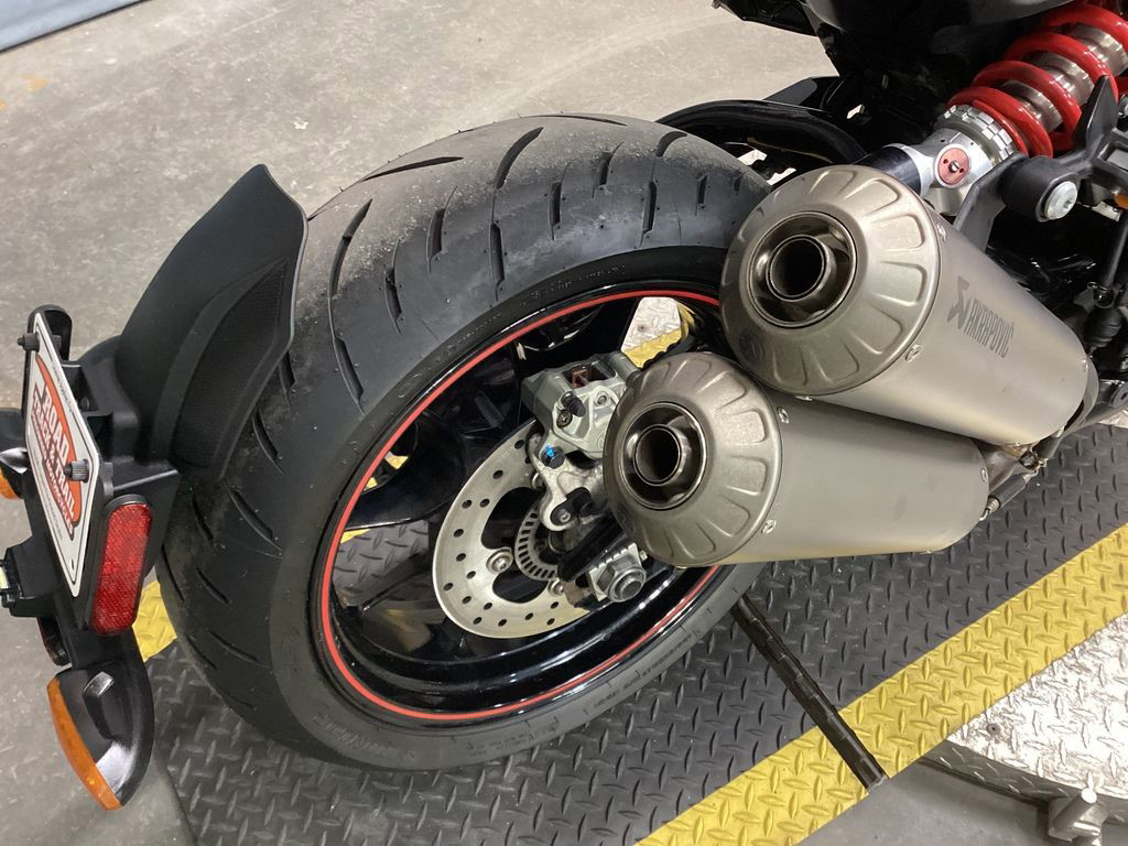 Premium titanium Akrapovic® exhaust mufflers add a mean look with sound to match.