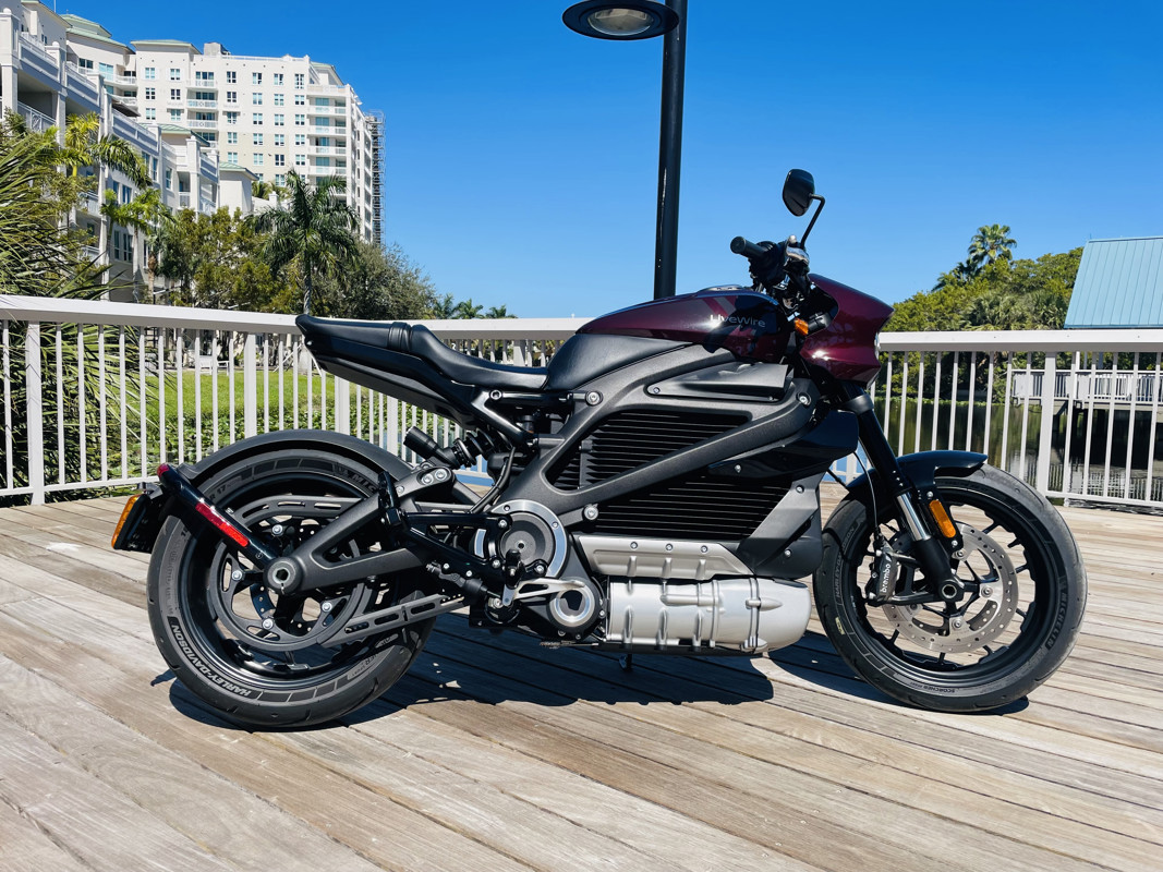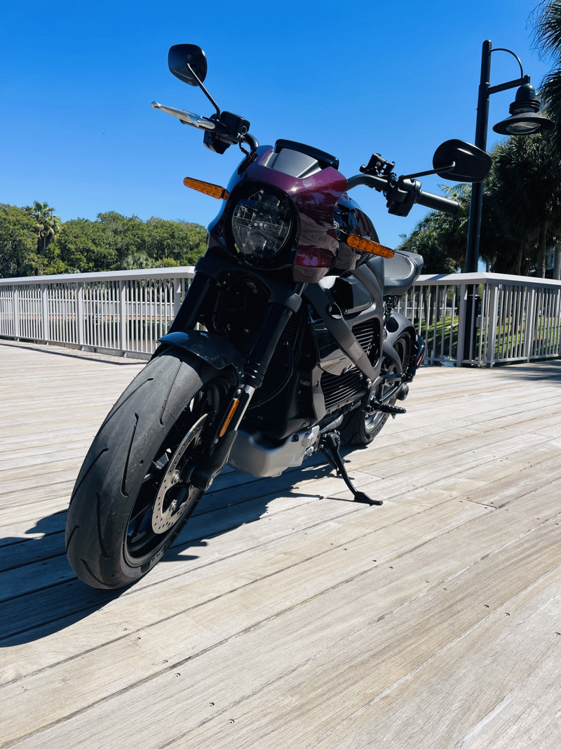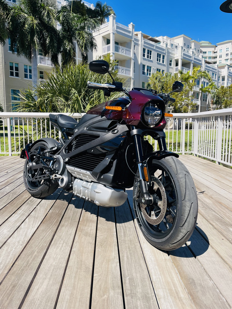This is a LW1 with 2,500 miles when we received it. We are having fun with the bike so mileage will go up. Yes, we allow for fun as well, and tons this one is. Comes with the charging cable for your garage and is in basically flawless condition. The only thing “wrong” is the unfortunately rather typical display delamination from sun exposure. A design flaw that Harley never fixed. The display is perfectly readable. We offer free engine oil changes for life on this bike. Full charge range indicator 120+ miles! Finished in “Nebula Red”, a burgundy tone similar to the black cherry of the late 90s and early 2000s. The bike is in near flawless condition.