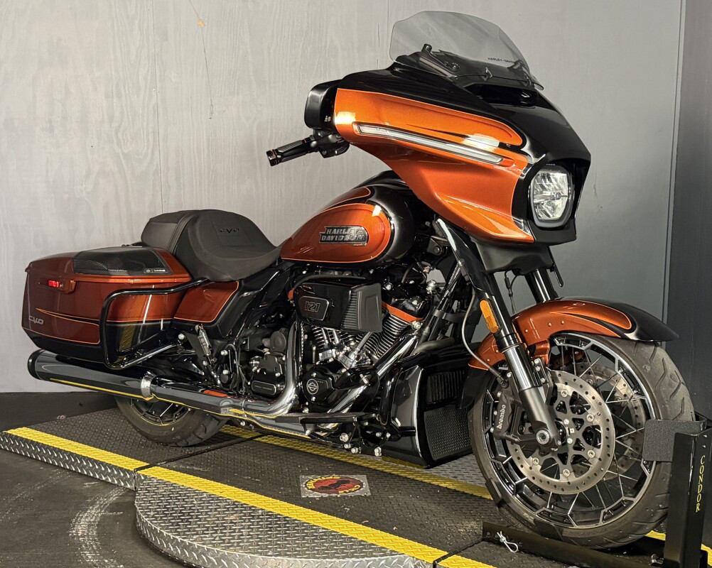 Want the very best in performance, style, tech, and rideability with added CVO refinement? The new CVO Street Glide delivers. With the customizable delivery of a Twin-Cooled, Milwaukee-Eight VVT 121 (1,977 cc) engine, Showa suspension, and Brembo braking excellence, riding with a smile is guaranteed.