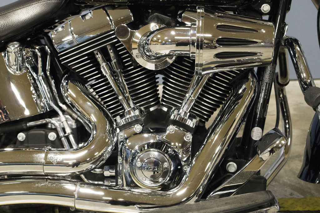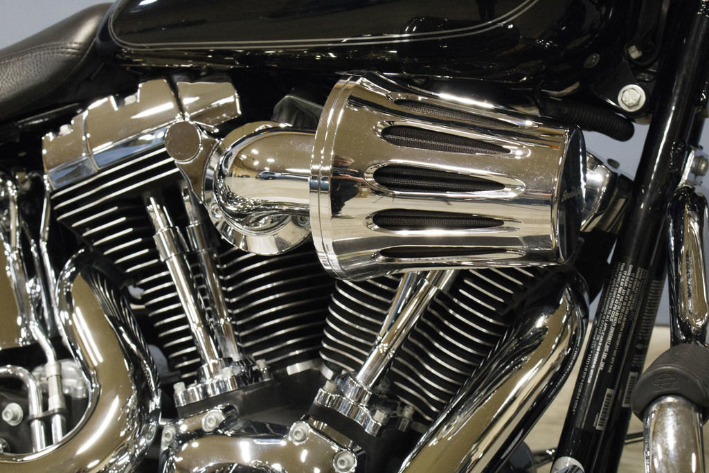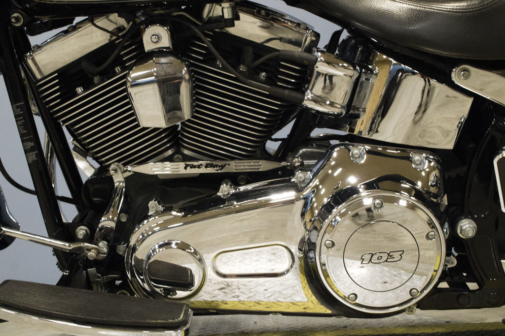 A healthy serving of sculpted bright chrome gives the Fat Boy motorcycle a look that’ll make a big impact.