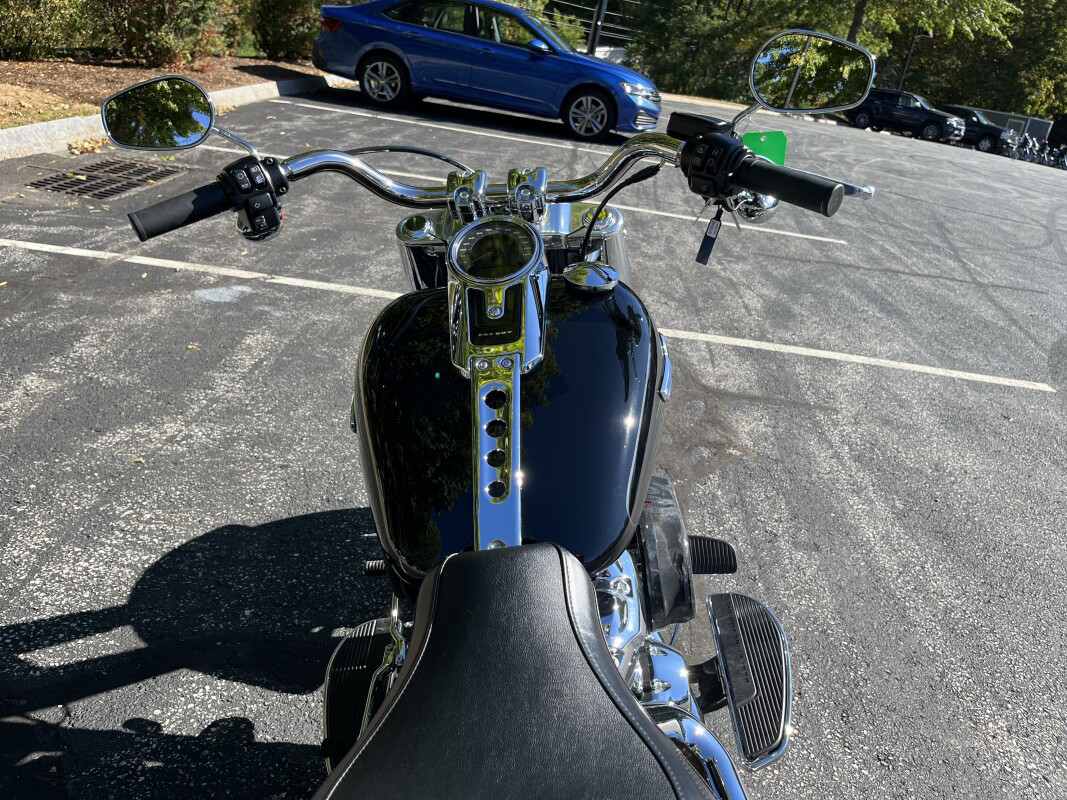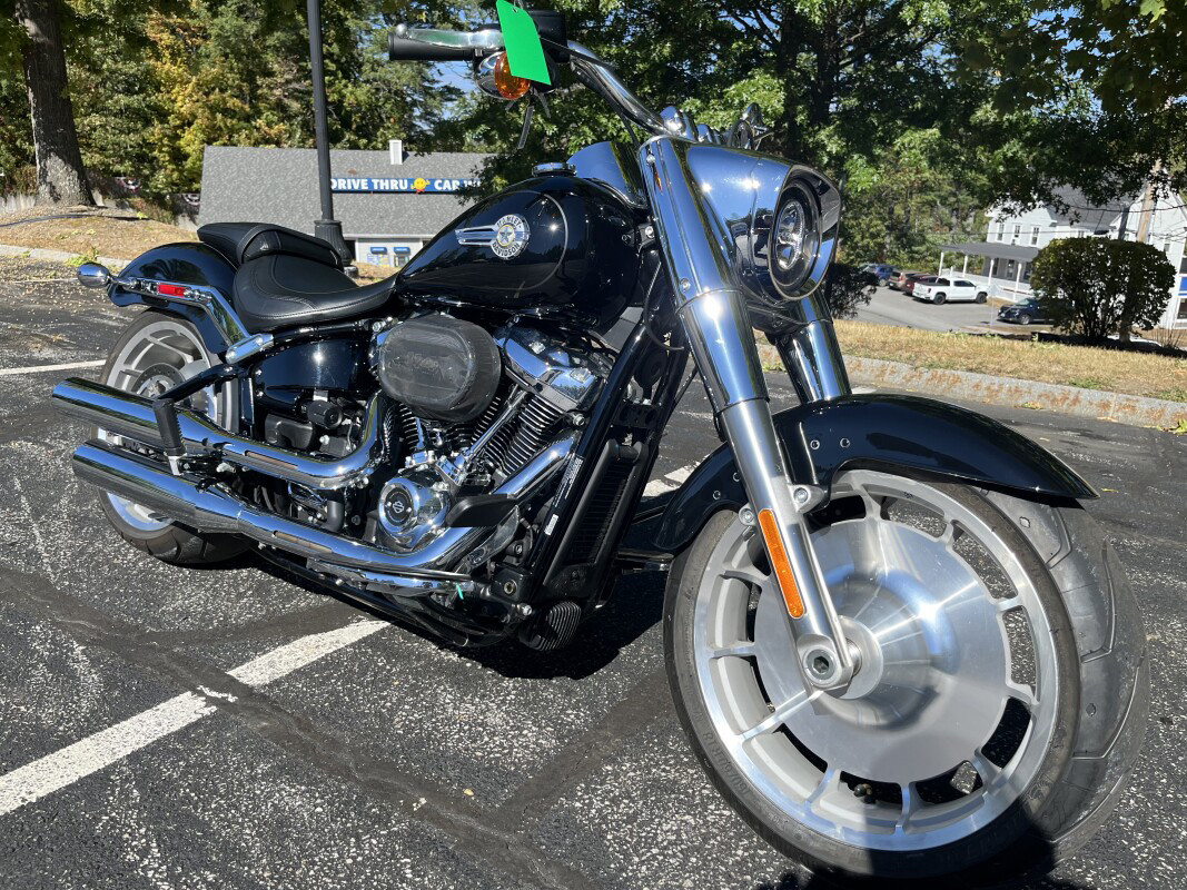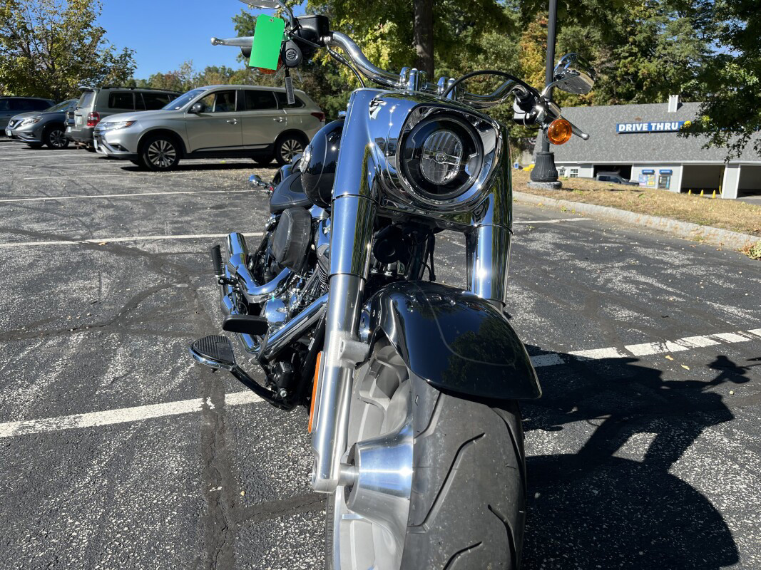 2023 Harley-Davidson Fat Boy 114 The original fat custom icon, now with bright chrome finishes Features may include: THIS IS THE RIGHT BIKE FORHot rod riders who like bright chrome and a steamroller stanceCommanding the road with fat tires and a squared-up headlampMilwaukee-Eight 114 V-Twin engine and Lakester disc wheelsBRIGHT CHROME FINISHES A healthy serving of sculpted bright chrome gives the Fat Boy motorcycle a look that’ll make a big impact. STEAMROLLER STANCE A muscular look thanks to solid-disc Lakester wheels wrapped in the widest front tire we’ve ever offered from the factory at 160mm combined with a rear tire at 240mm. SIGNATURE LED FORWARD LIGHTING Darkness-defying lighting that gives you great nighttime visibility. HIGH PERFORMANCE REAR MONO SHOCK Easily adjustable mono-shock rear suspension allows for dynamic cornering while preserving the hardtail look.