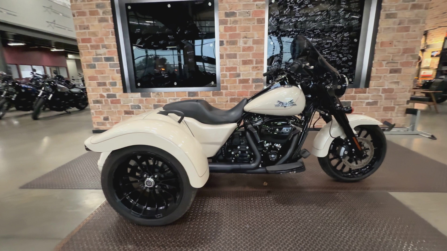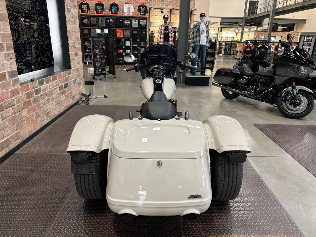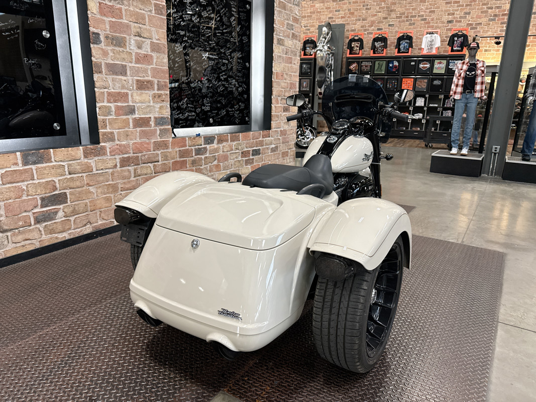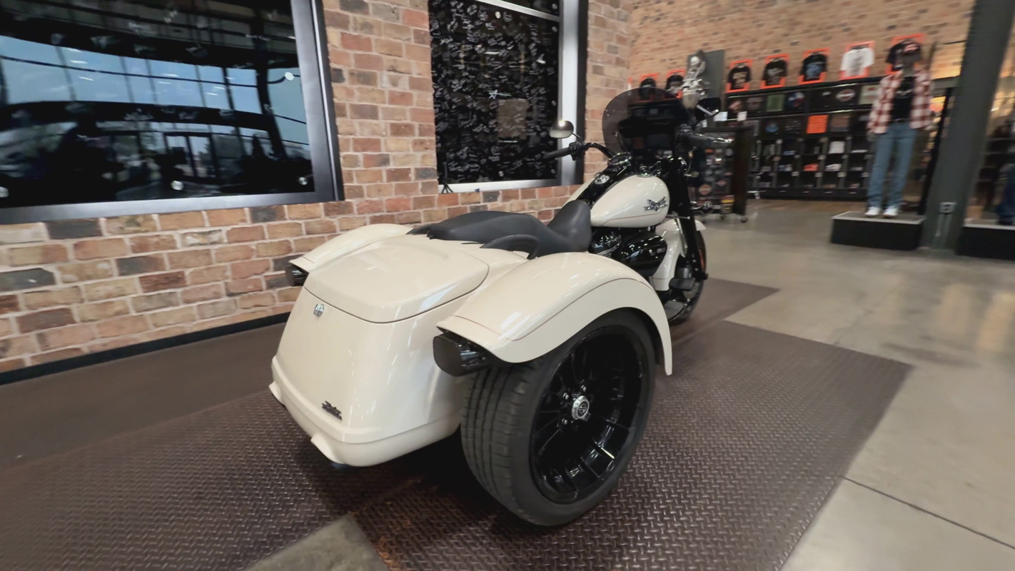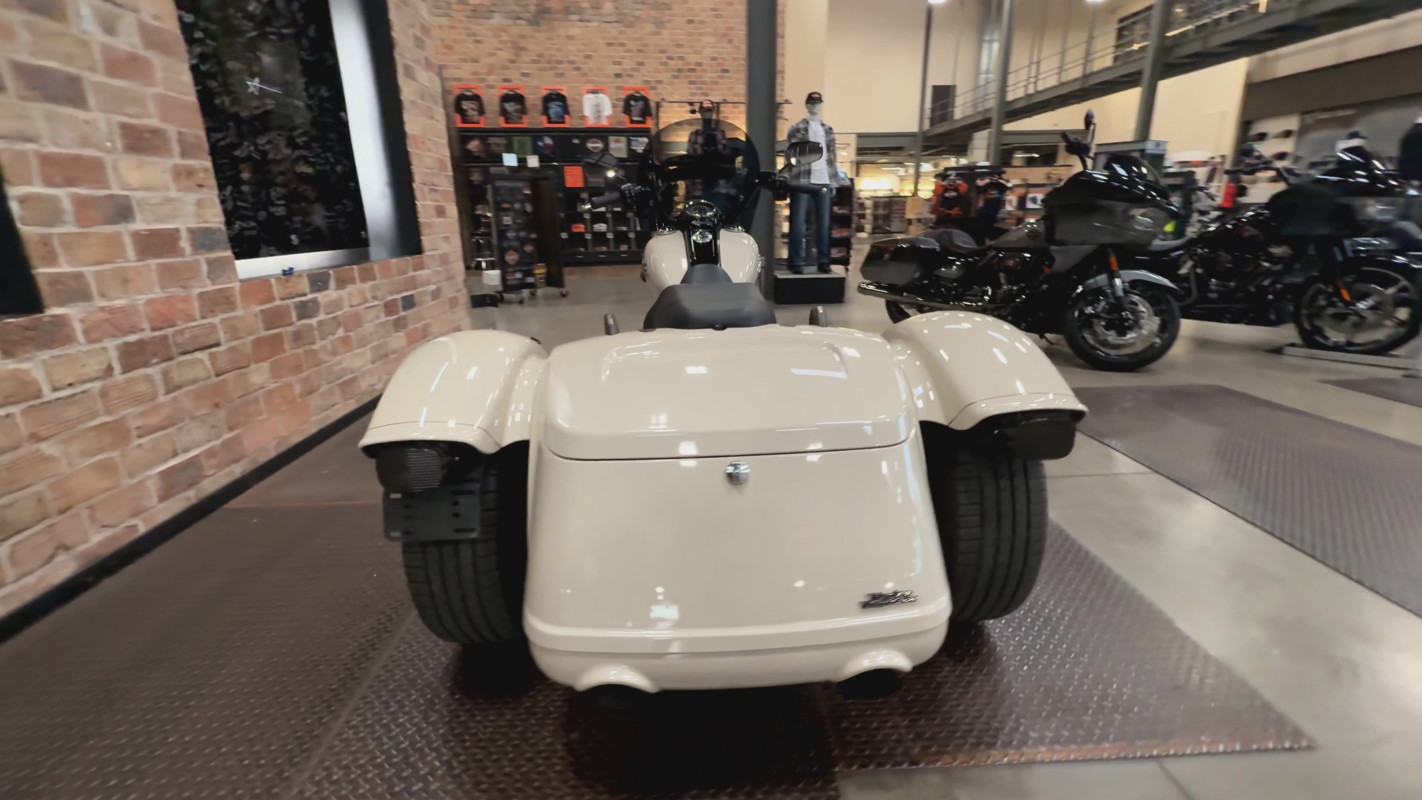 The 2023 Harley-Davidson Trike is a unique and eye-catching vehicle that combines the thrill of a motorcycle with the stability of a three-wheeled design. This particular model is finished in a stunning White Sand Pearl color, which adds a touch of elegance and sophistication to its robust appearance. With only 3,235 miles on the odometer, this used trike is in excellent condition, ready to offer many more miles of adventure.