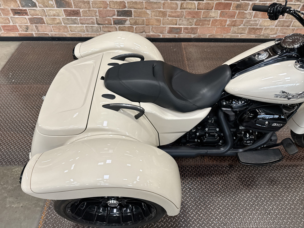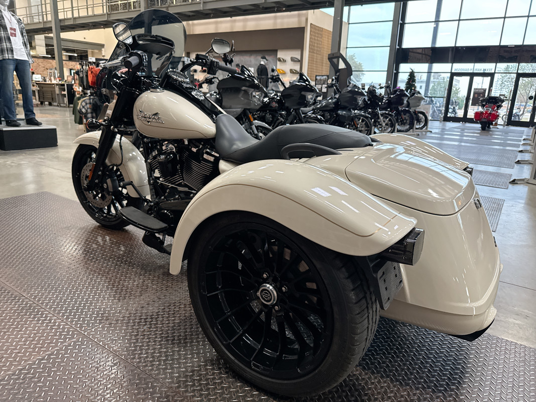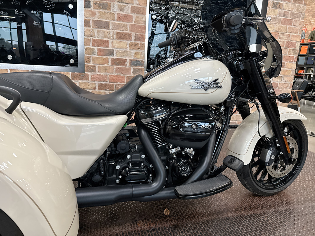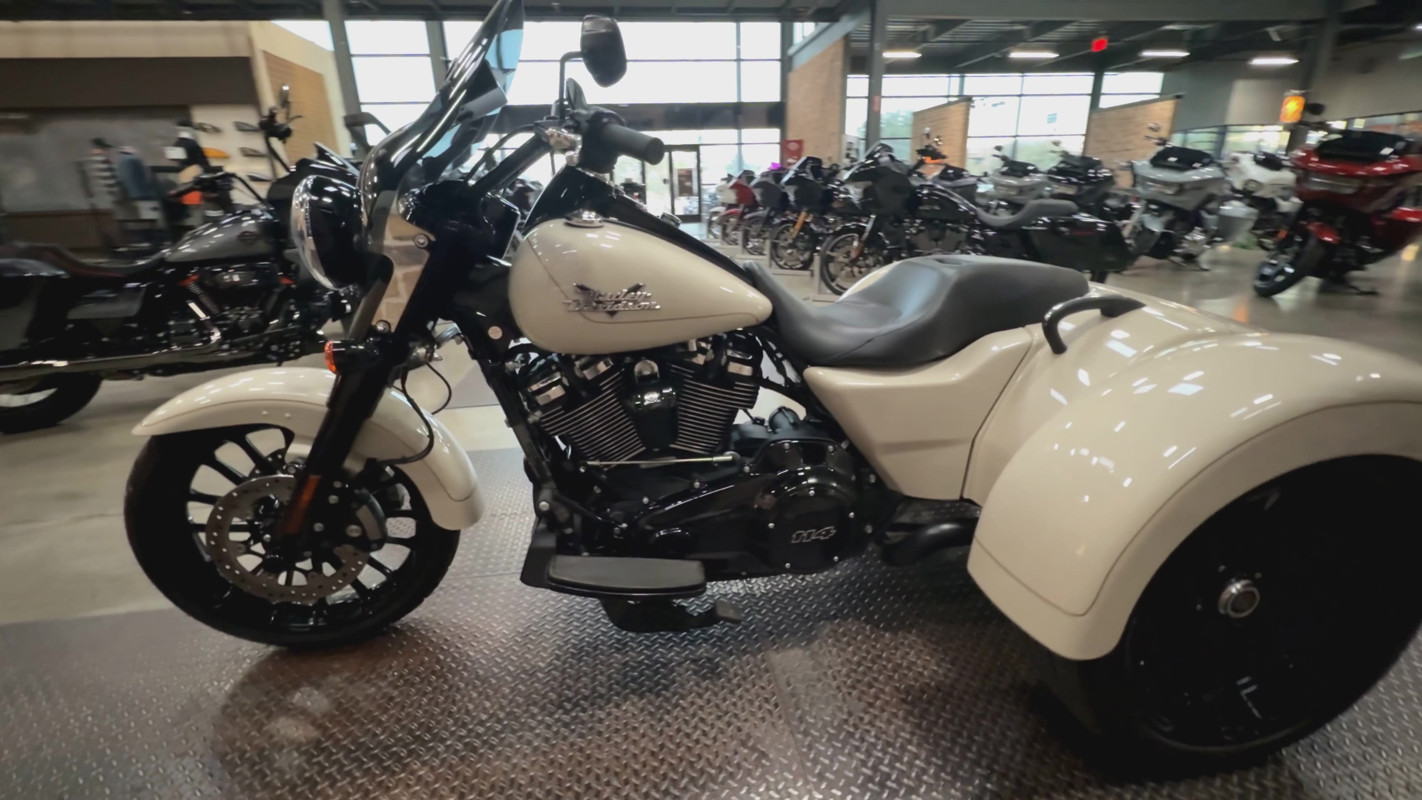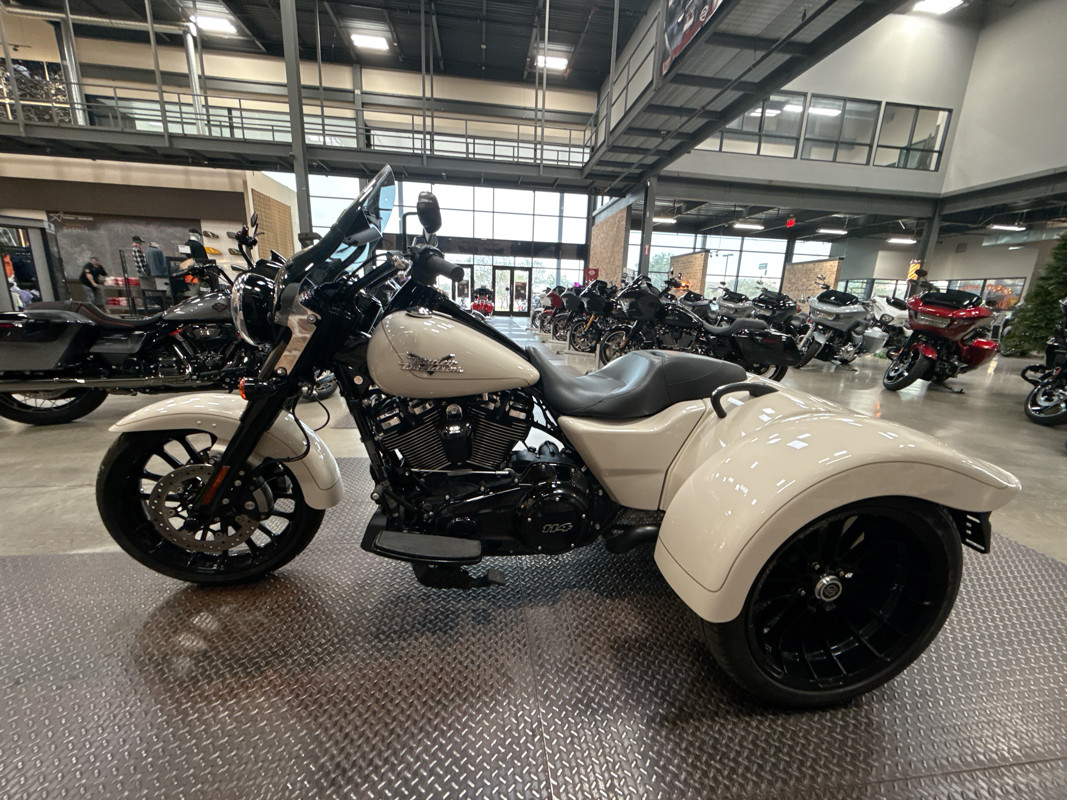 The 2023 Harley-Davidson Trike is a unique and eye-catching vehicle that combines the thrill of a motorcycle with the stability of a three-wheeled design. This particular model is finished in a stunning White Sand Pearl color, which adds a touch of elegance and sophistication to its robust appearance. With only 3,235 miles on the odometer, this used trike is in excellent condition, ready to offer many more miles of adventure.