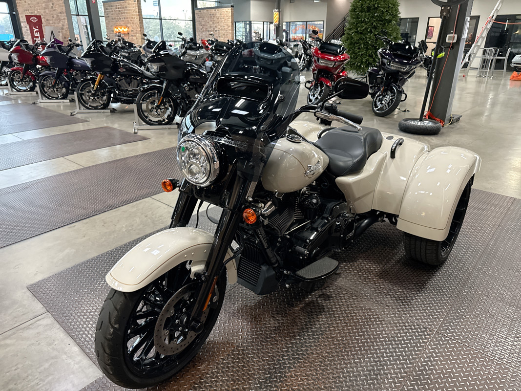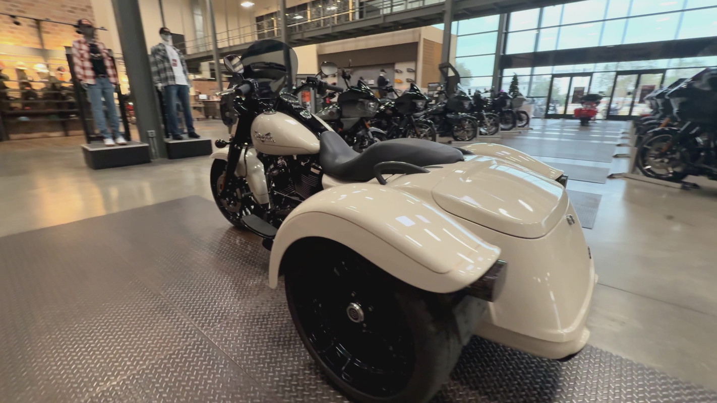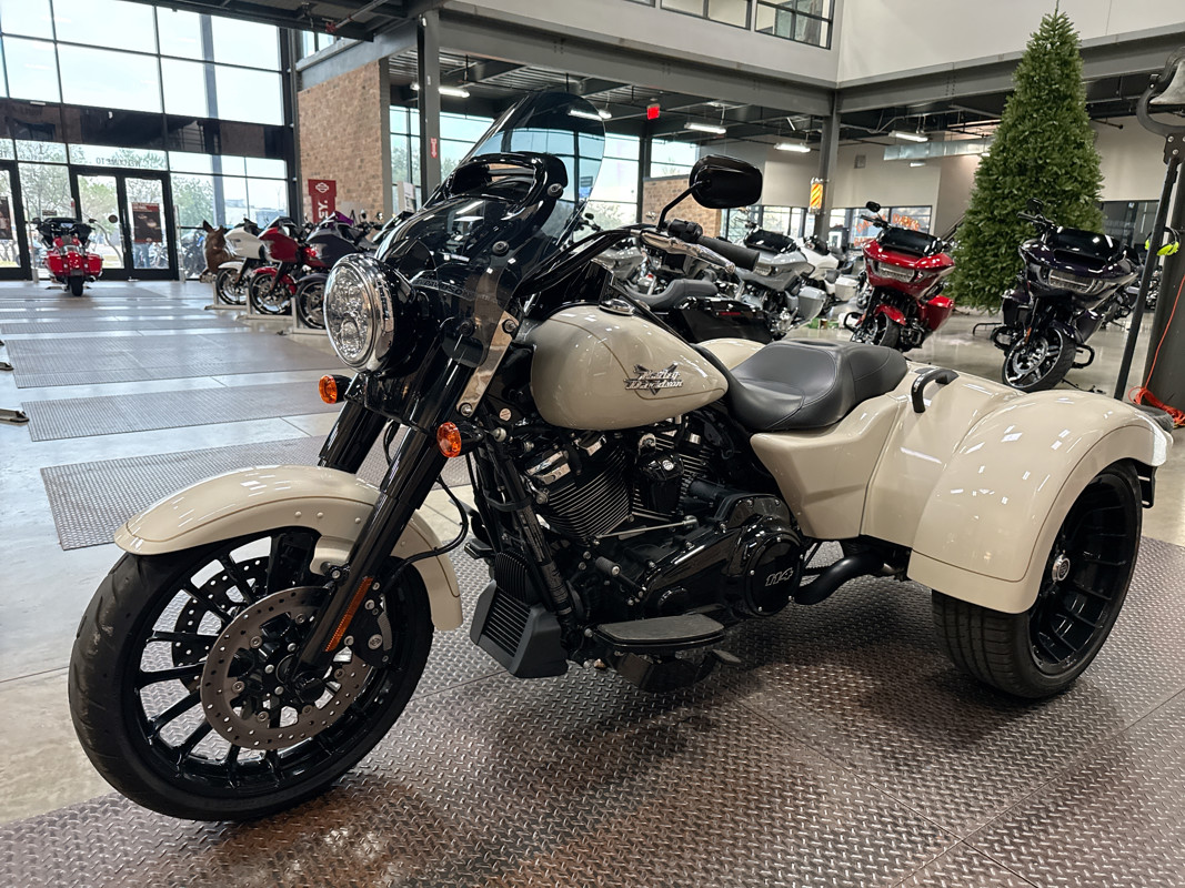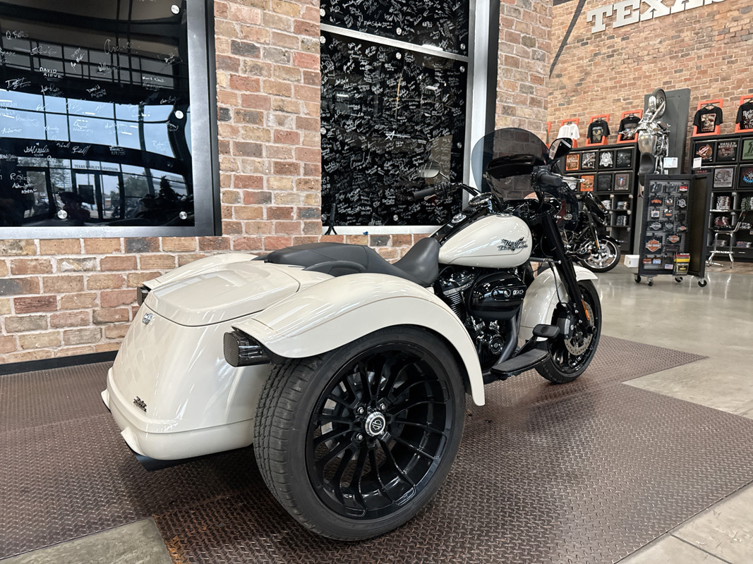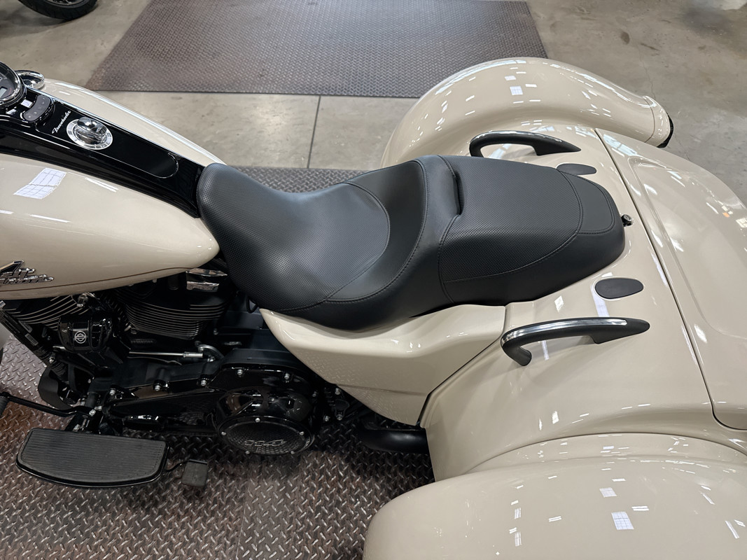 The 2023 Harley-Davidson Trike is a unique and eye-catching vehicle that combines the thrill of a motorcycle with the stability of a three-wheeled design. This particular model is finished in a stunning White Sand Pearl color, which adds a touch of elegance and sophistication to its robust appearance. With only 3,235 miles on the odometer, this used trike is in excellent condition, ready to offer many more miles of adventure.