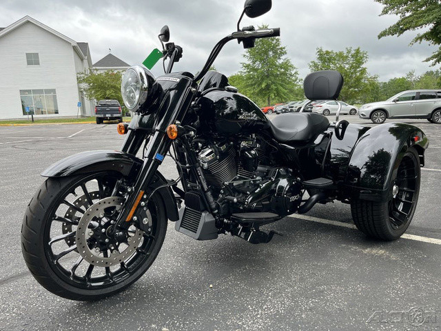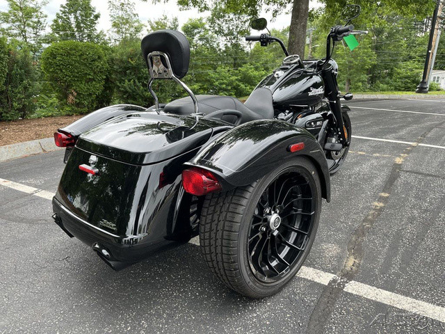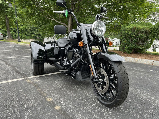2023 Harley-Davidson® Freewheeler®Cruise with confidence.Hot-rod attitude on three wheels, the 2023 Freewheeler delivers aggressive style, confidence and performance.Features may include:Milwaukee-Eight 114 V-Twin PowertrainBlacked out hot-rod styling and attitude3-Wheel Comfort and performanceTHROW IT IN REVERSEElectric reverse gear makes it easier to move vehicle in and out of parking spaces or a garage.TRUNK SPACEWeather-proof rear trunk with top-mounted door for easy loading.REAR VIEWBobtail rear fenders and slash cut pipe for extra attitude.BLACKED-OUT STYLINGSoaking in blacked-out attitude from the front end, headlamp nacelle, tank console, hand and foot controls to the powertrain and exhaust.CHASSISBuilt on a chassis engineered by Harley-Davidson exclusively for three-wheeled vehicles that offers optimized handling and performance.