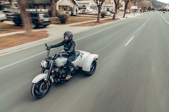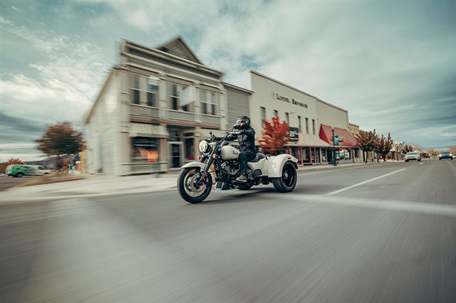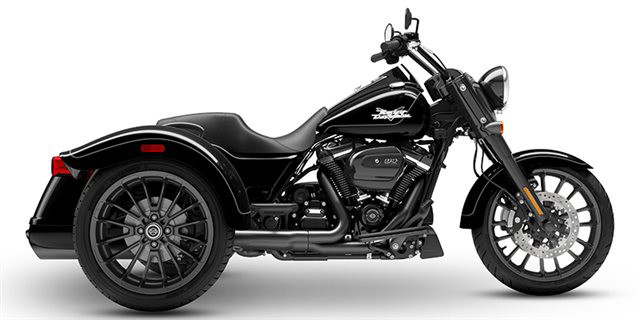 2023 HARLEY-DAVIDSON® FREEWHEELER® Cruise with confidence. Hot-rod attitude on three wheels, the 2023 Freewheeler delivers aggressive style, confidence and performance. Features may include: Milwaukee-Eight 114 V-Twin Powertrain Blacked out hot-rod styling and attitude 3-Wheel Comfort and performance THROW IT IN REVERSE Electric reverse gear makes it easier to move vehicle in and out of parking spaces or a garage. TRUNK SPACE Weather-proof rear trunk with top-mounted door for easy loading. REAR VIEW Bobtail rear fenders and slash cut pipe for extra attitude. BLACKED-OUT STYLING Soaking in blacked-out attitude from the front end, headlamp nacelle, tank console, hand and foot controls to the powertrain and exhaust. CHASSIS Built on a chassis engineered by Harley-Davidson exclusively for three-wheeled vehicles that offers optimized handling and performance.