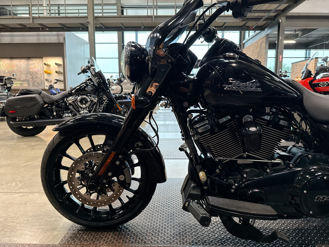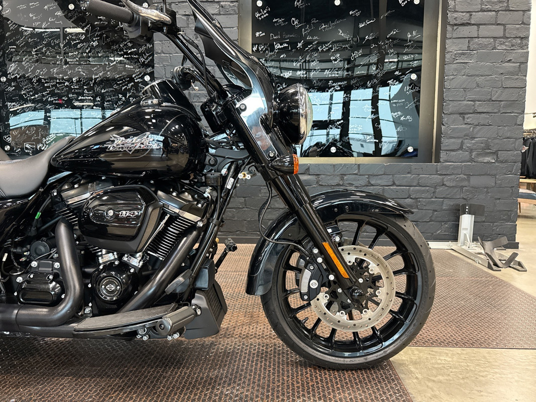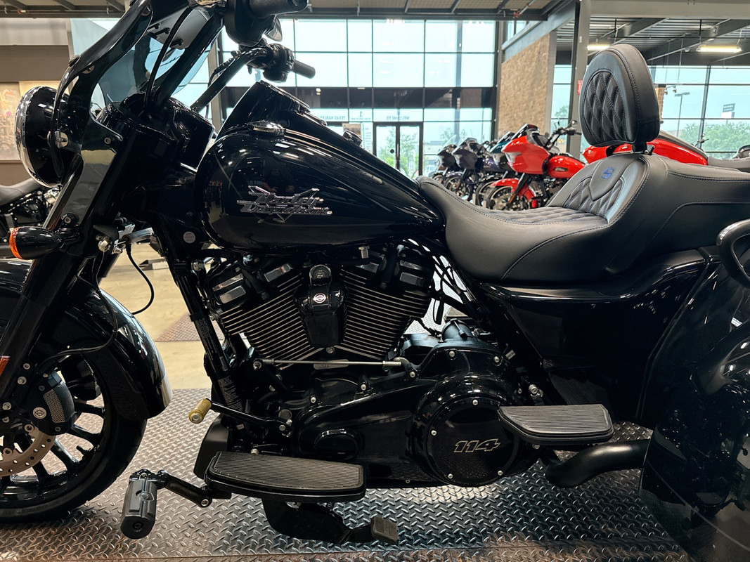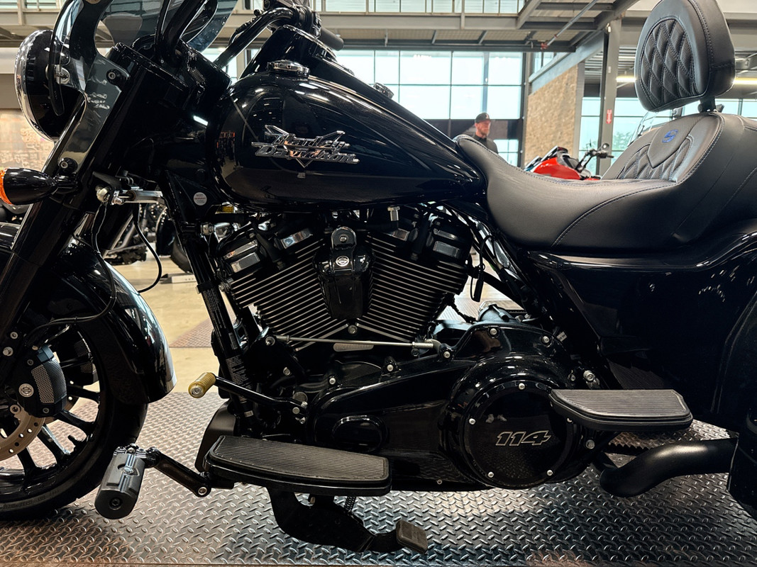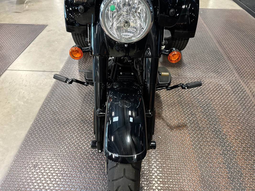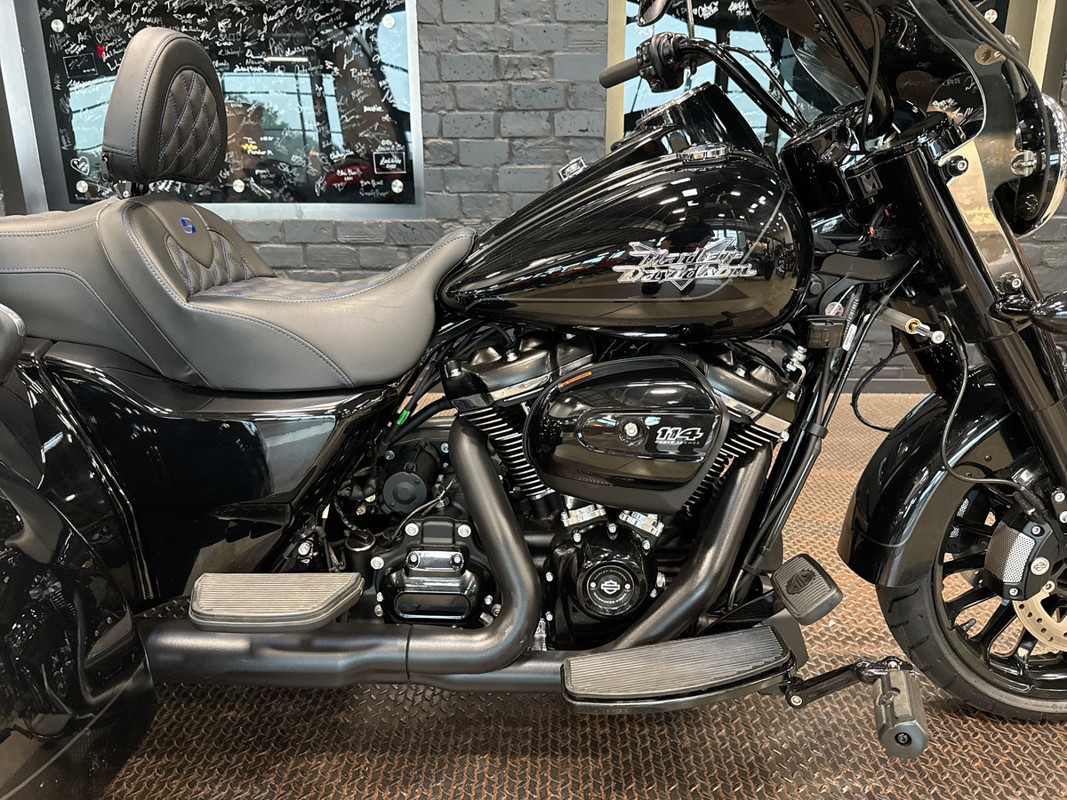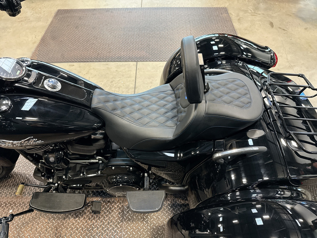 This Trike boasts a striking black exterior adorned with a sleek pinstripe that beautifully accentuates its bold and daring design. This color combination not only enhances its premium appearance but also pays homage to the iconic style that Harley-Davidson riders cherish.