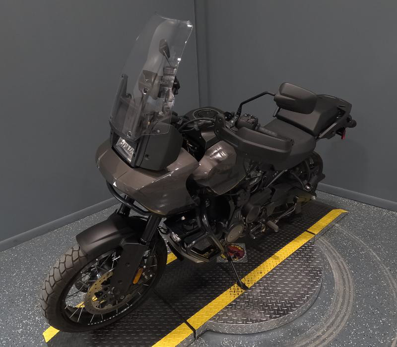 The Pan America 1250 Special is a standout in the world of adventure touring motorcycles. Its commanding presence is accentuated by its stunning Gray Haze exterior, offering a sleek and rugged look that stands out whether you're carving through mountain passes or cruising through city streets.
