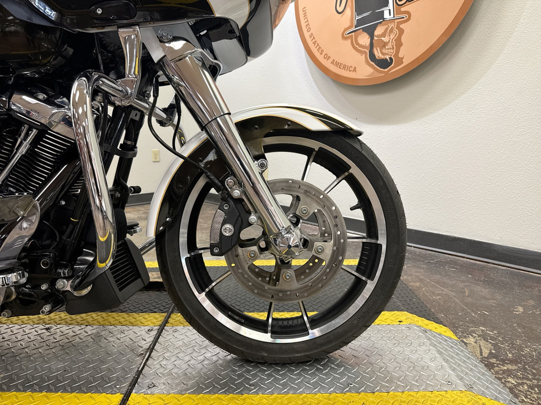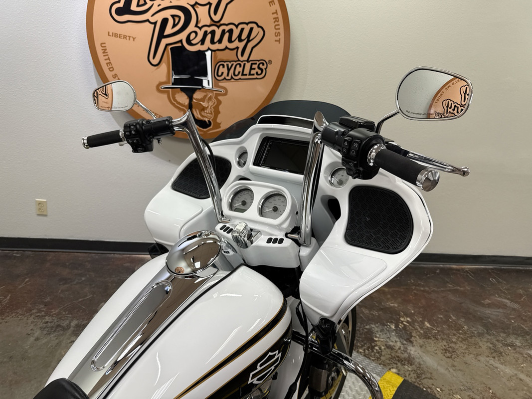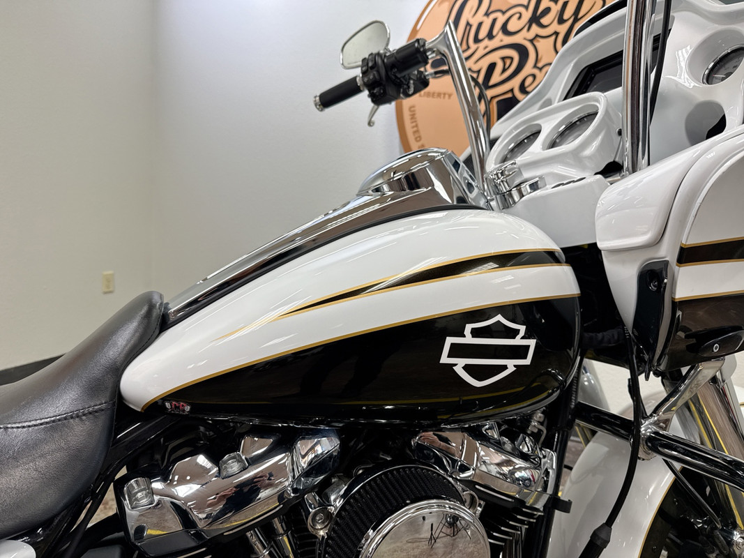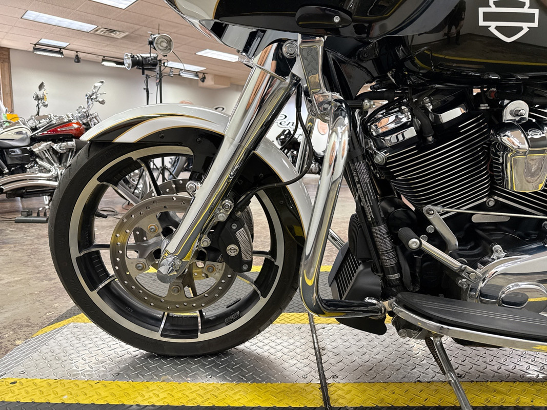The exterior of this Road Glide is finished in a striking custom Paint, which gives it a sophisticated and timeless look. The chrome 5-spoke wheels add a touch of elegance and shine, making it a head-turner wherever you go. The bike's aerodynamic design not only enhances its visual appeal but also improves its performance on the road.