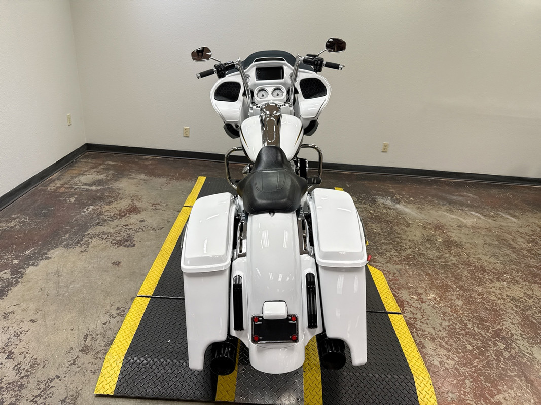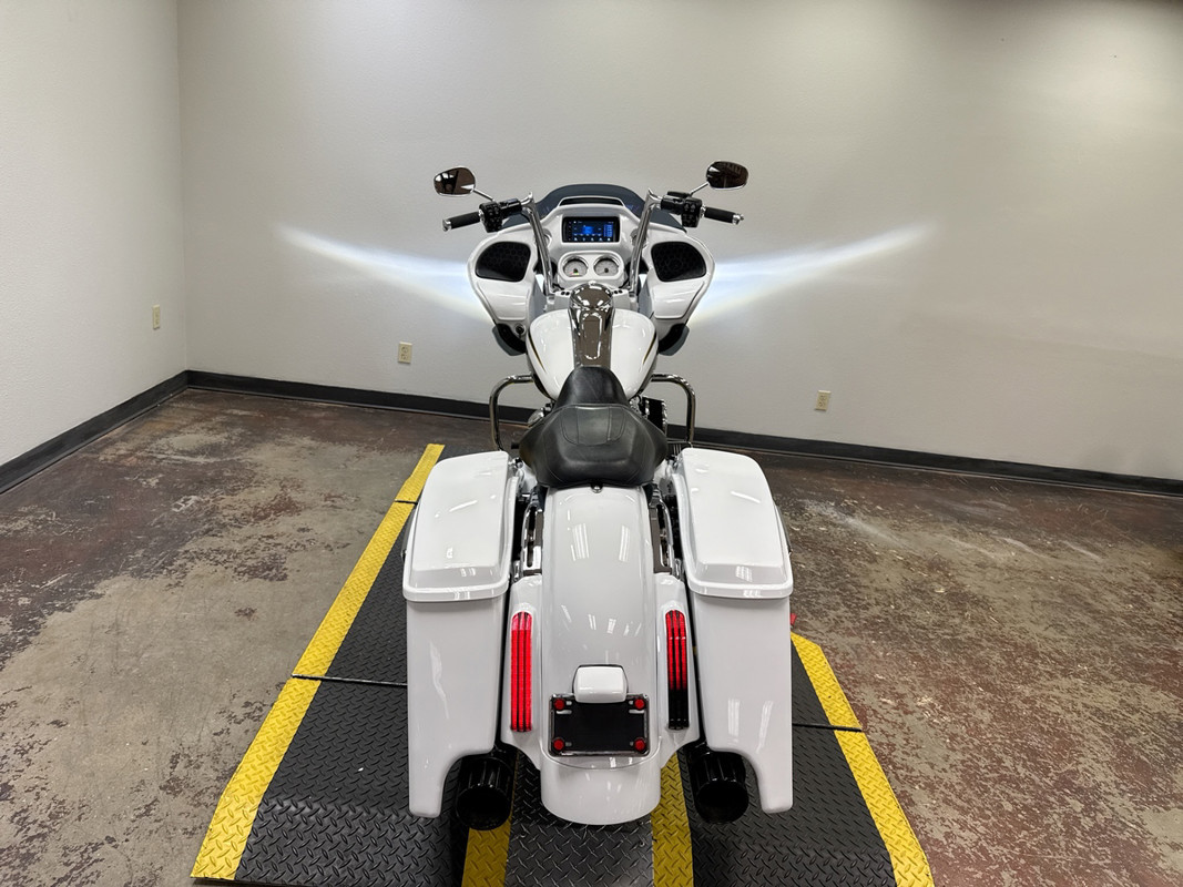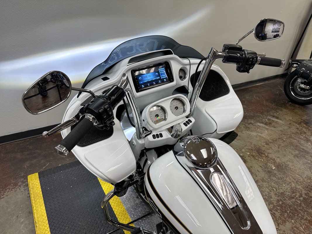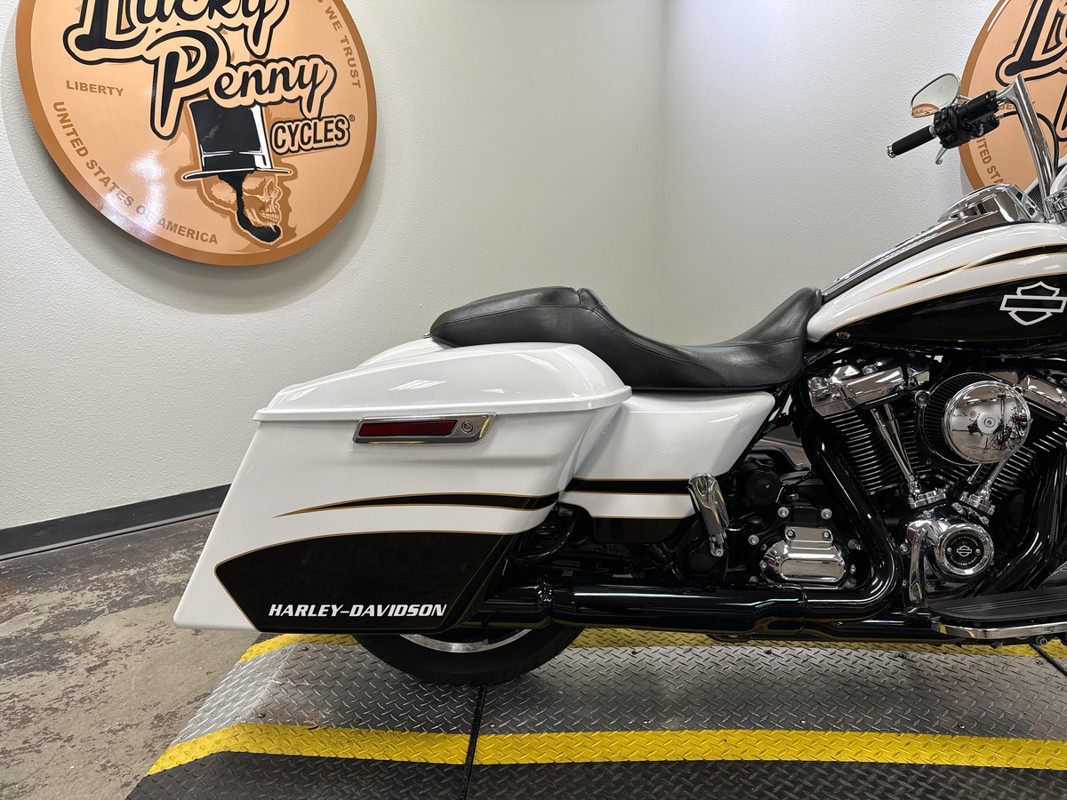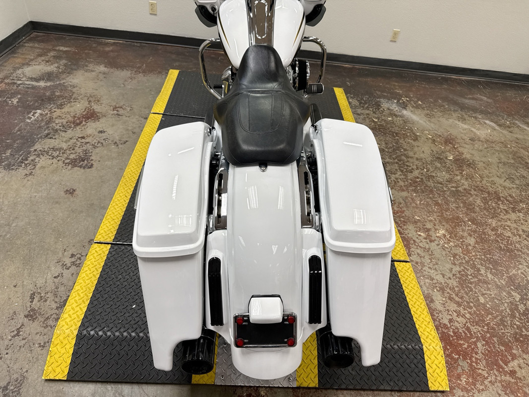 The exterior of this Road Glide is finished in a striking custom Paint, which gives it a sophisticated and timeless look. The chrome 5-spoke wheels add a touch of elegance and shine, making it a head-turner wherever you go. The bike's aerodynamic design not only enhances its visual appeal but also improves its performance on the road.