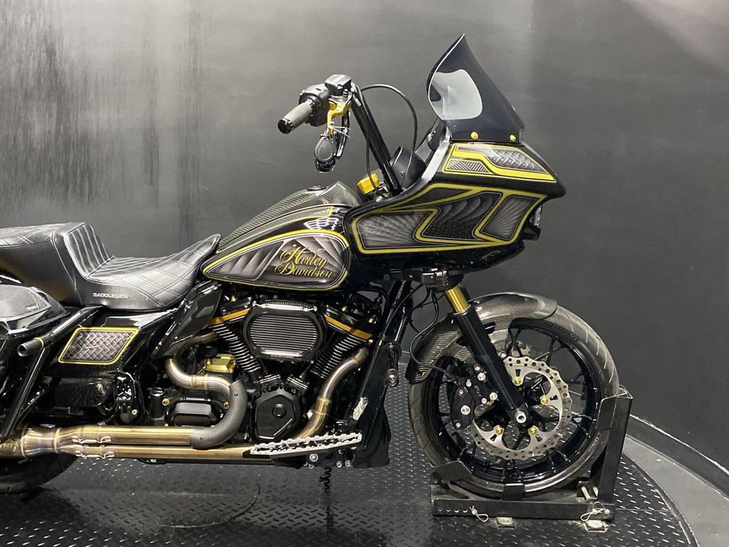 YOU ARE LOOKING AT A 2023 HARLEY DAVIDSON ROAD GLIDE SPECIAL (FLTRXS) WITH 15,281 MILES ON IT. IT IS VIVID BLACK WITH CUSTOM GRAPHICS IN COLOR AND POWERED BY A 1868CC (114") FUEL INJECTED MILWAUKEE EIGHT ENGINE AND 6 SPEED TRANSMISSION. THE BIKE COMES WITH ABS BRAKES, CRUISE CONTROL, NAVIGATION, 1 KEY, 1 FOB, AND FACTORY SECURITY SYSTEM. THERE ARE SOME EXTRAS ON THE BIKE WHICH INCLUDE HPI EXHAUST ($1,985.95), NESS AIR CLEANER ($496.95), DERBY COVER ($169.95), LEVERS ($149.95), DIAMOND AUDIO FAIRING/SADDLEBAG SPEAKERS ($1,608.95), SADDLEMEN SEAT ($495.95), PM CAM COVER ($329.95), PM TRANSMISSION SIDE COVER ($274.95), NICECNE TRANSMISSION TOP COVER ($79.95), IGNITION SWITCH COVER ($29.95), ALUMINUM FLOORBOARDS, PASSENGER PEGS, AND BRAKE PEDAL ($434.95), APE HANGER BARS ($1,500 INSTALLED), GRIPS ($79.95), MIRRORS ($119.95), CRASH BAR ($305.95), SADDLEBAG SLIDERS ($174.95), CARBON FIBER FRONT FENDER ($449.95), CARBON DASH PANEL ($298.95), BAJA DESIGN HEADLIGHT ($1,129.95), BAJA DESIGN TURN SIGNALS ($649.95), DECAL KIT ($1,232.95), KLOCKWERKS WINDSHIELD ($179.95), AND SHIFTER LINKAGE ($99.95). THERE ARE NO SCRATCHES, DENTS, OR DINGS THAT I CAN FIND WITH THE EXCEPTION OF SMALL TOUCHUPS ON THE REAR FENDER. THE CHROME AND ALUMINUM ARE IN GOOD CONDITION WITH THE EXCEPTION OF SCRATCHES ON THE SADDLEBAG SLIDER, TOUCHUPS ON THE FORK LOWERS, AND SMALL TEAR IN THE SEAT. THE TIRES HAVE GOOD TREAD LEFT ON THEM.