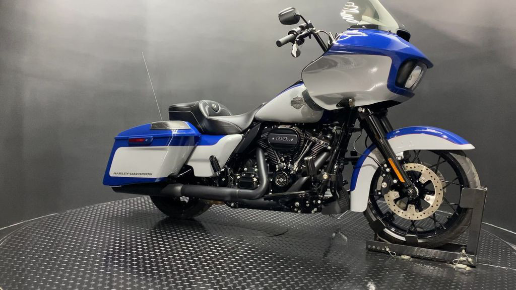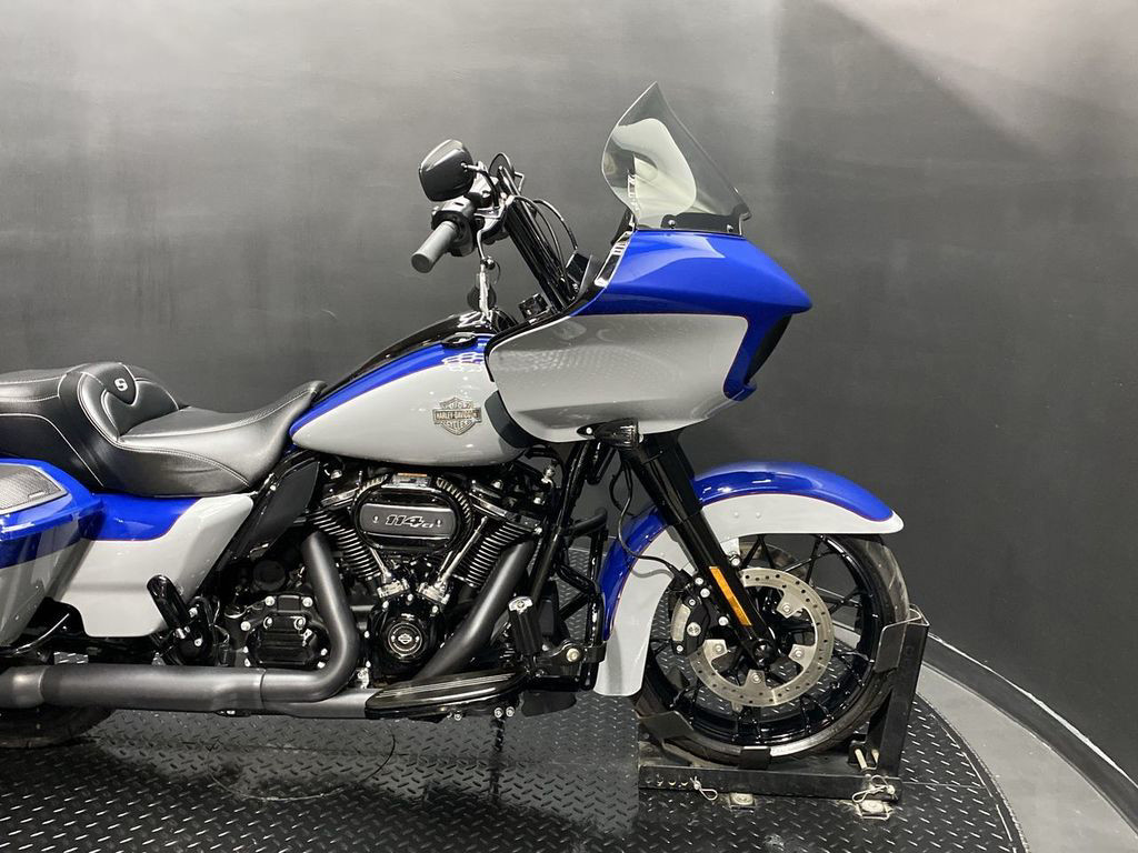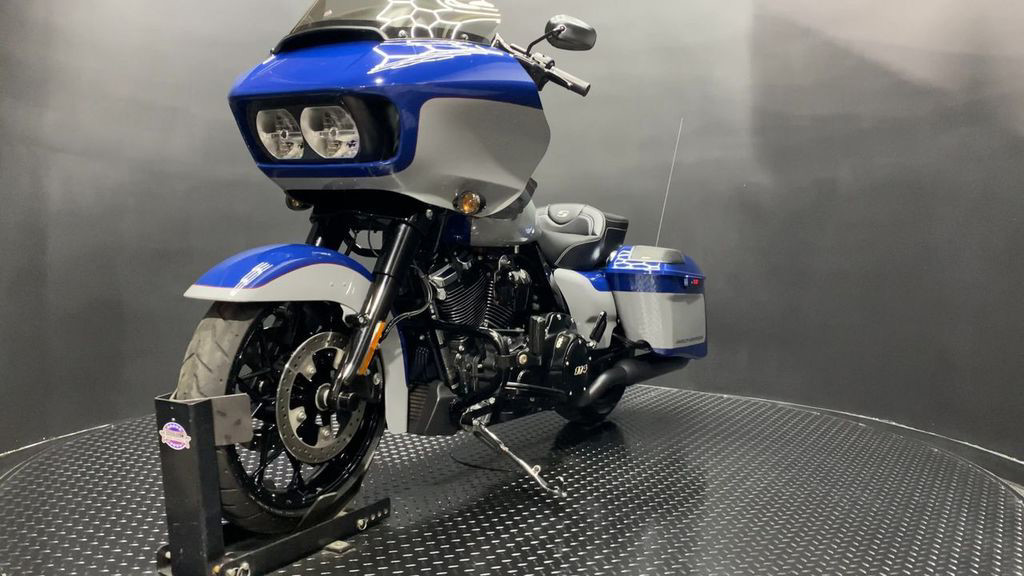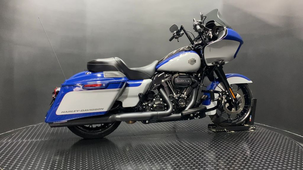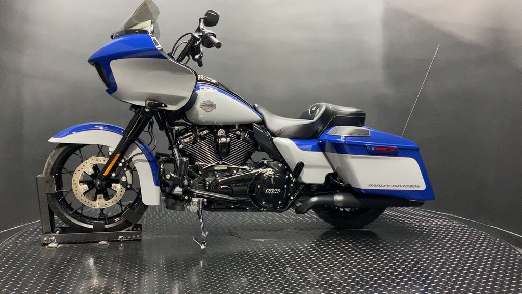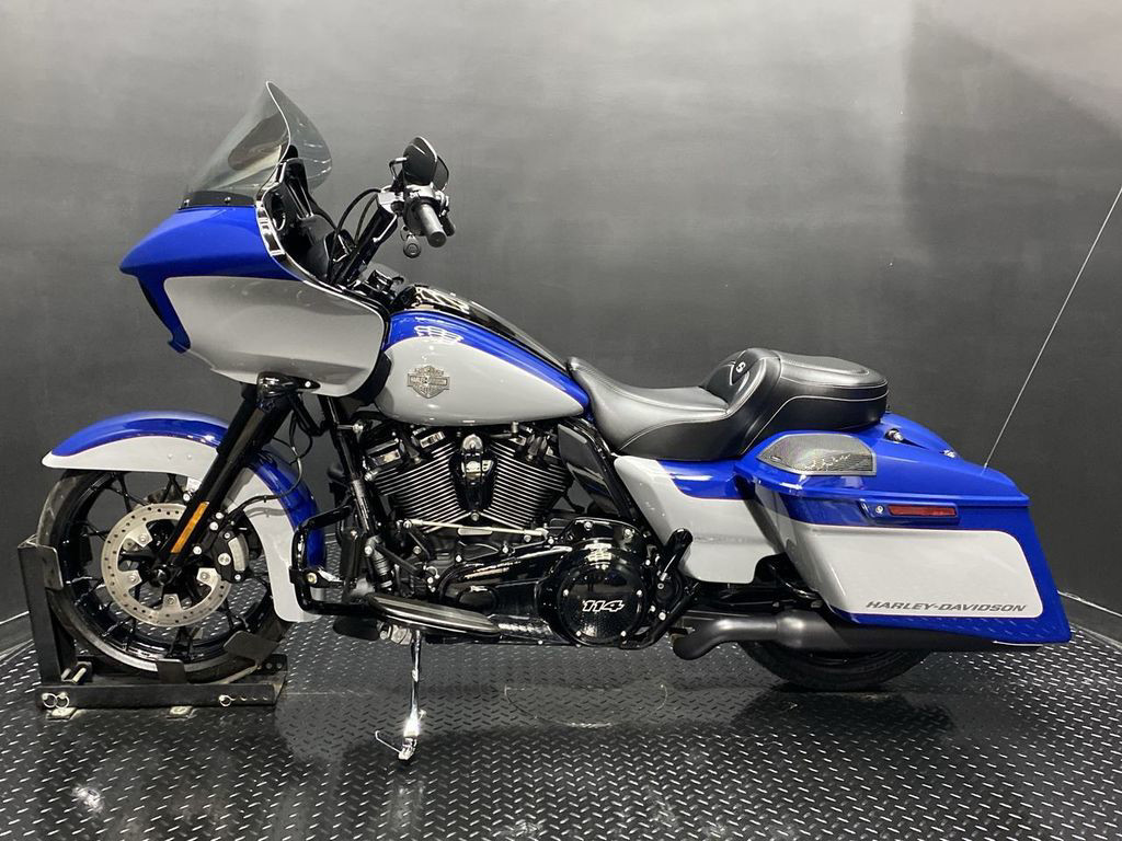 YOU ARE LOOKING AT A 2023 HARLEY DAVIDSON ROAD GLIDE SPECIAL (FLTRXS) WITH 8,462 MILES ON IT. IT IS BRIGHT BILLIARD BLUE AND BILLIARD GRAY IN COLOR AND POWERED BY A 1868CC (114") FUEL INJECTED MILWAUKEE EIGHT ENGINE AND 6 SPEED TRANSMISSION. THE BIKE COMES WITH ABS BRAKES, CRUISE CONTROL, NAVIGATION, 1 KEY, 1 FOB, AND FACTORY SECURITY SYSTEM. THERE ARE SOME EXTRAS ON THE BIKE WHICH INCLUDE COBRA SLIP-ON MUFFLERS ($424.95), SADDLEMEN SEAT ($623.95), SADDLEBAG LID SPEAKERS ($899.95), HIGHWAY PEGS ($179.95), KLOCKWERKS WINDSHIELD ($179.95), AND APE HANGER BARS ($1,500 INSTALLED). THERE ARE NO SCRATCHES, DENTS, OR DINGS THAT I CAN FIND WITH THE EXCEPTION OF A SMALL TOUCHUPS ON THE FRONT FENDER. THE CHROME AND ALUMINUM ARE IN GOOD CONDITION. THE TIRES HAVE GOOD TREAD LEFT ON THEM.