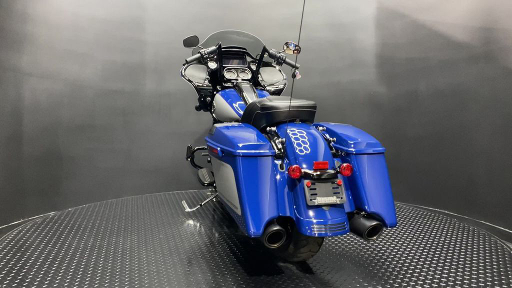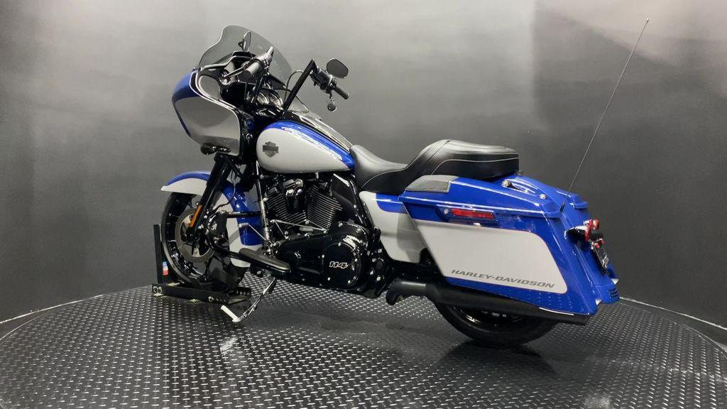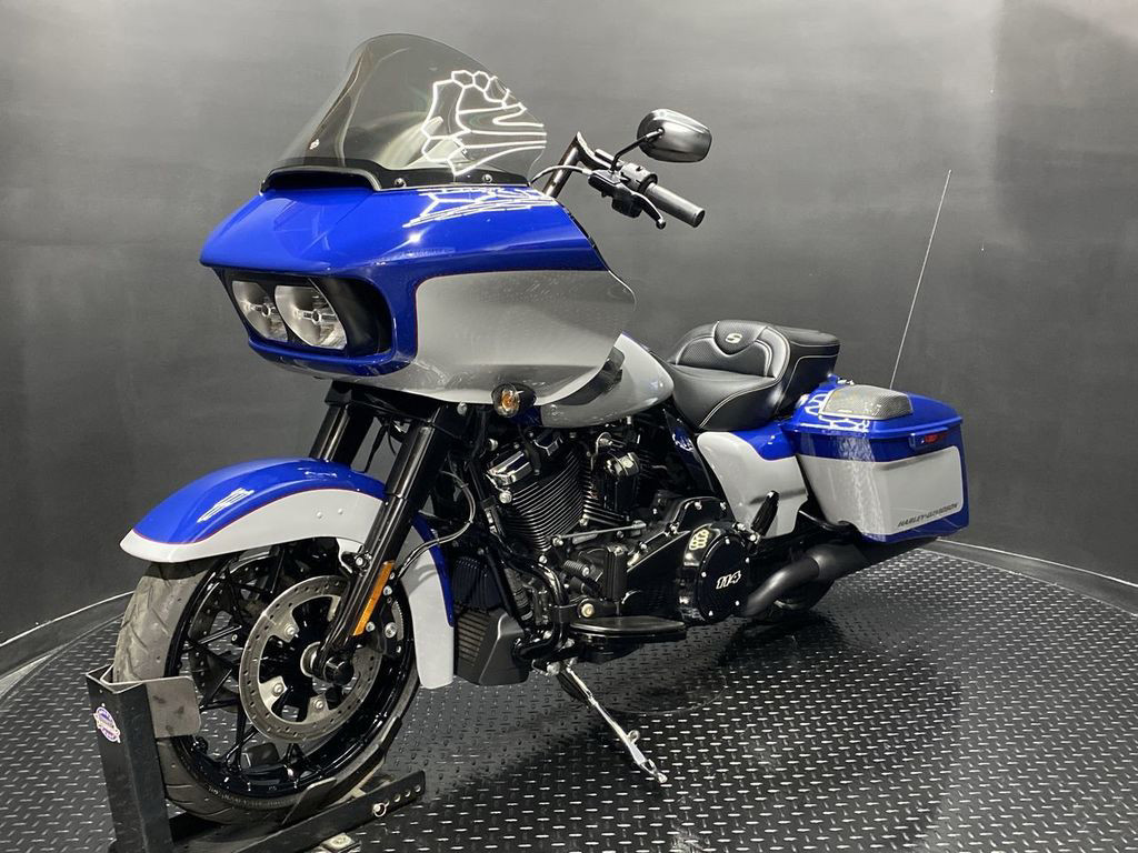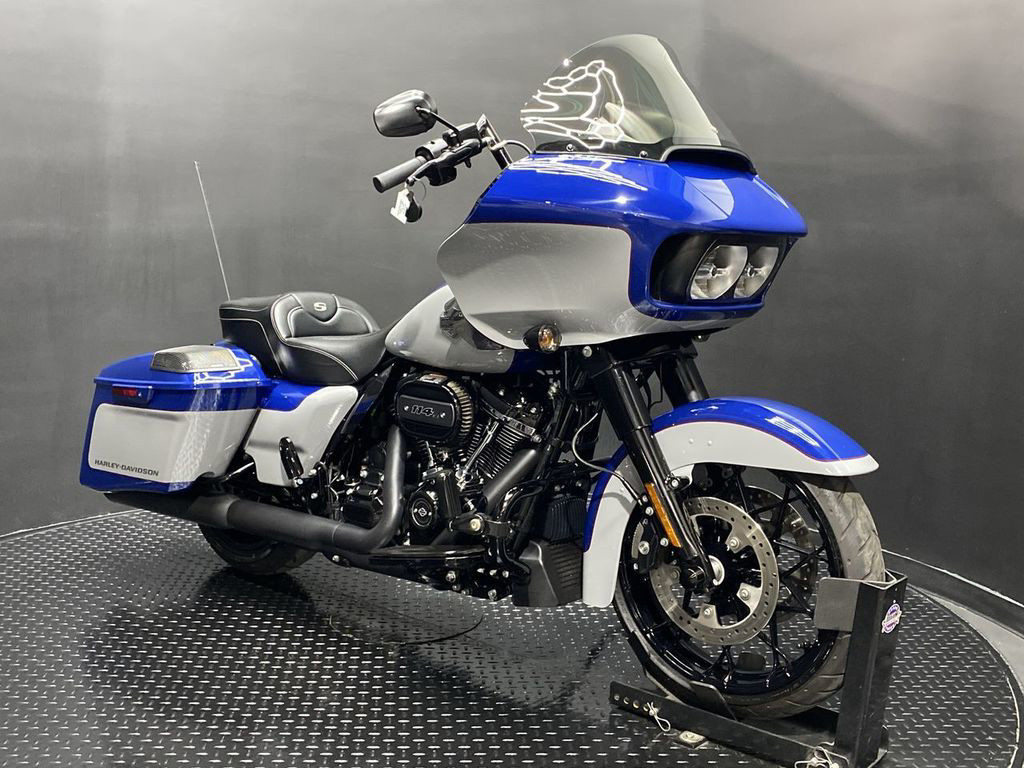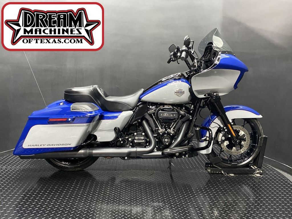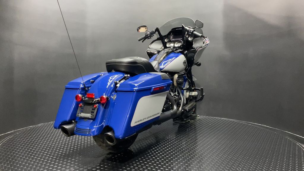 YOU ARE LOOKING AT A 2023 HARLEY DAVIDSON ROAD GLIDE SPECIAL (FLTRXS) WITH 8,462 MILES ON IT. IT IS BRIGHT BILLIARD BLUE AND BILLIARD GRAY IN COLOR AND POWERED BY A 1868CC (114") FUEL INJECTED MILWAUKEE EIGHT ENGINE AND 6 SPEED TRANSMISSION. THE BIKE COMES WITH ABS BRAKES, CRUISE CONTROL, NAVIGATION, 1 KEY, 1 FOB, AND FACTORY SECURITY SYSTEM. THERE ARE SOME EXTRAS ON THE BIKE WHICH INCLUDE COBRA SLIP-ON MUFFLERS ($424.95), SADDLEMEN SEAT ($623.95), SADDLEBAG LID SPEAKERS ($899.95), HIGHWAY PEGS ($179.95), KLOCKWERKS WINDSHIELD ($179.95), AND APE HANGER BARS ($1,500 INSTALLED). THERE ARE NO SCRATCHES, DENTS, OR DINGS THAT I CAN FIND WITH THE EXCEPTION OF A SMALL TOUCHUPS ON THE FRONT FENDER. THE CHROME AND ALUMINUM ARE IN GOOD CONDITION. THE TIRES HAVE GOOD TREAD LEFT ON THEM.