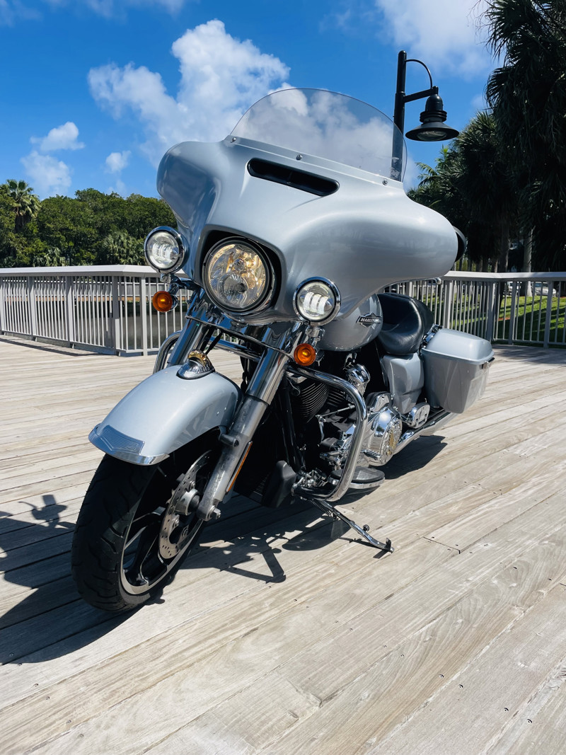 Street Glide (FLHX) is the most popular platform frame in the Harley lineup today. The touring frame shared with the smaller Road King and the bigger Electra Glide makes the Street Glide a perfect cross bike between cruising and touring. It has the bags to go on long trips, the radio and all the comfort, yet is still agile enough to be comfortable riding at low speeds as well.