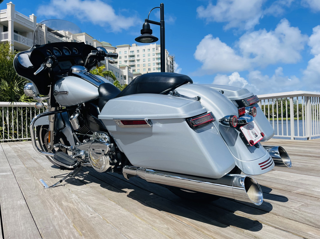 This Street Glide is equipped with the new Milwaukee Eight (M8) motor with 107ci displacement. Mostly stock with some upgrades. The bike has been owned by a 77-year-old gentlemen who rode it ironbutt style for two years putting a nice 70K miles on this bike while keeping it pristine. While this motor shows absolutely no issues your main concern is probably the mileage on this bike. Keep in mind that for merely $3000 you can find a light used M8 107 motor or rebuilt this motor with a 114 kit for about $3000. The condition here shows an owner who cared about his bike, worth more than any mileage can ever tell you. Tires are good, nothing to do here but ride just like he did. But we have seen already 140K mile M8 bikes on the auction. Condition here tells more of a story than anything else.