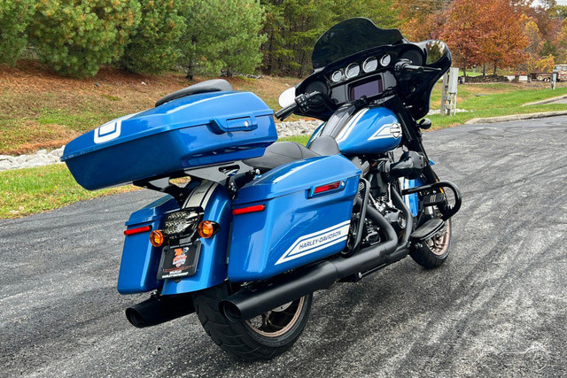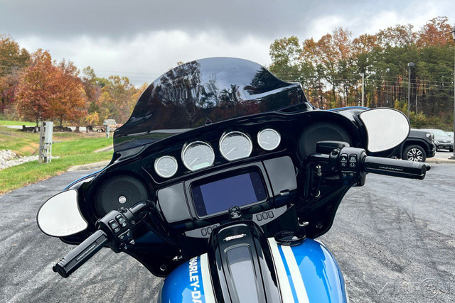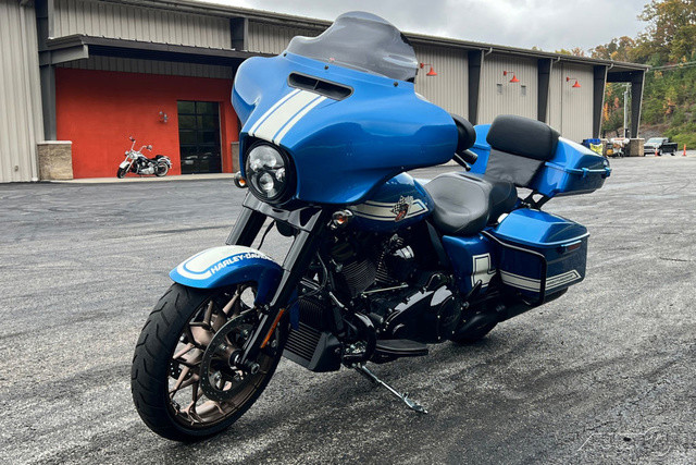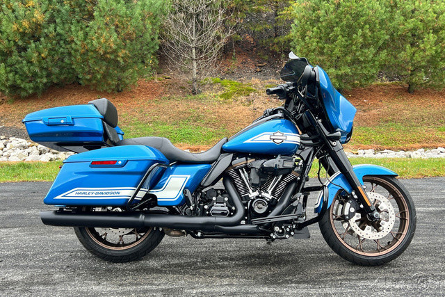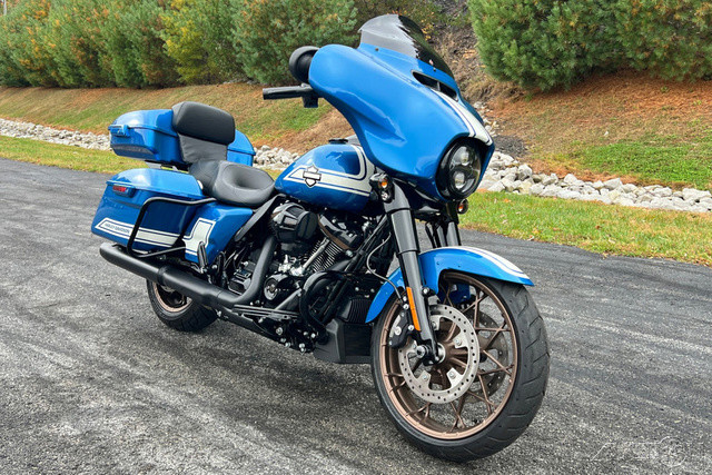 2023 Harley-Davidson® Street Glide® ST An elevated pro-touring performance bagger steeped in West Coast style cues.Features may include:OVERVIEW 117 cubic inches of displacement and high-performance tuning Iconic bagger styling with a classic batwing fairing Enthusiasts seeking top-of-the-line comfort and performance PREMIUM INFOTAINMENT Boom!™ Box GTS infotainment system with color touch screen, two fairing-mount speakers and hidden radio antenna. BLACKED OUT EVERYTHING Front end, controls, powertrain and exhaust. The only bright bits are pushrod tubes and tappet covers, and machined cylinder fins. SPORT TOURING PROFILE Standard saddlebags for a trimmed look and more room to lean.