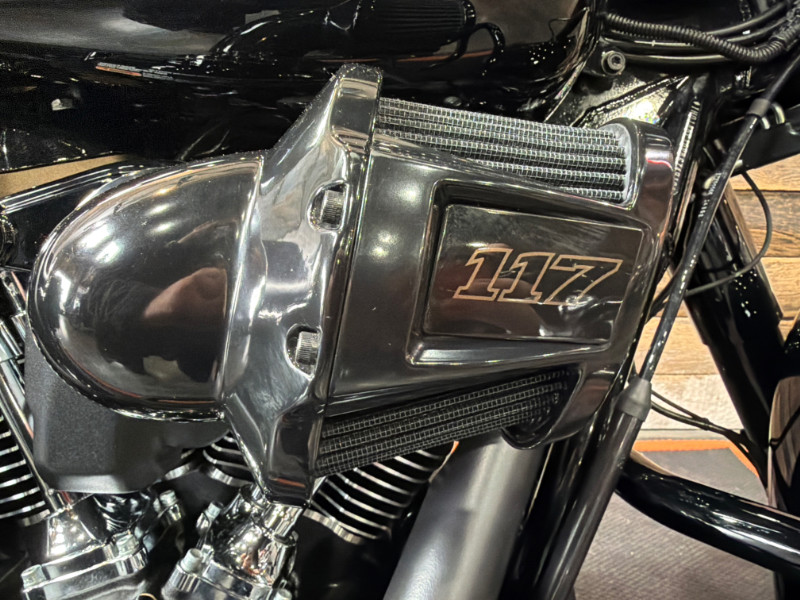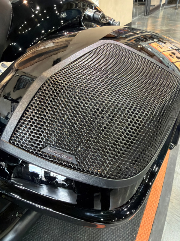 This bike comes with the Milwaukee Eight 117 Engine, 6-Speed Transmission, Rockford Fosgate Fairing Speakers, Rockford Fosgate Saddlebag Speakers, LED Headlamp, LED Smoked Tailight, Docking Hardware, H-D Empire Collection: Grips, Floorboards, Shifter Peg, and Derby Cover; ABS, BOOM! Box GTS Infotainment System, Daymaker LED Headlamp, Smart Security System, Blacked Out Everything, Black H-D Heavy Breather, H-D Gold Wheels, and much more.