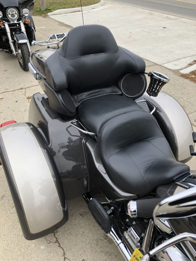 USED HARLEY TRI GLIDE FOR SALE WITH ONLY 12,340 MILES IN HARD TO FIND COLOR "GRAY HAZE AND SILVER FORTUNE"! THIS ONE IS A MUST-SEE! CLEAN, CLEAN, CLEAN, ALL STOCK, NO MODIFICATIONS, AND LOW, LOW MILES! DRIVER AND PASSENGER CUP HOLDERS, PHONE HOLDER, AIR RIDE, HIGHWAY PEGS, OVERSIZED L.E.D. SCREEN, BLUE TOOTH STEREO, NAVIGATION SYSTEM, CRUISE CONTROL, SECURITY SYSTEM, AND MORE! JUST SERVICED AT DEALERSHIP, INSPECTED, ALL FLUIDS CHANGED, RUNS STRONG, EVERYTHING WORKS, NEEDS NOTHING! BUY WITH CONFIDENCE! CERTIFIED AND WARRANTY AVAILABLE! SOLD NEW FOR OVER $40,000. WHY BUY NEW? SAVE OVER $10,000! THIS ONE IS CLEAN! THIS ONE IS A DEAL!