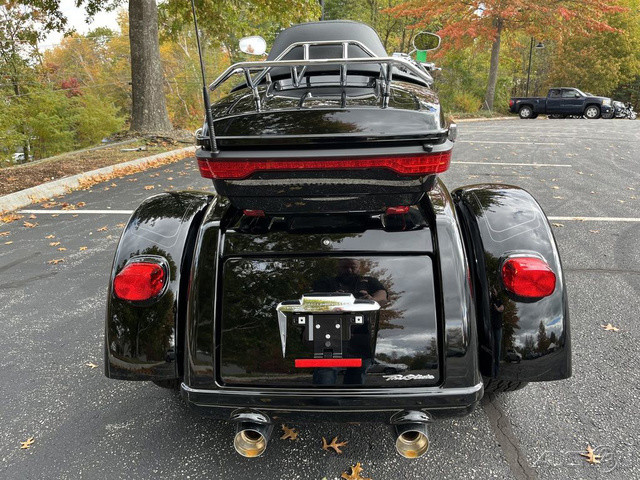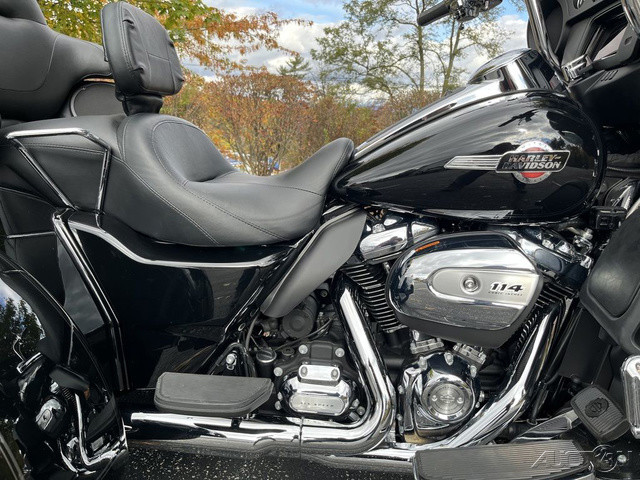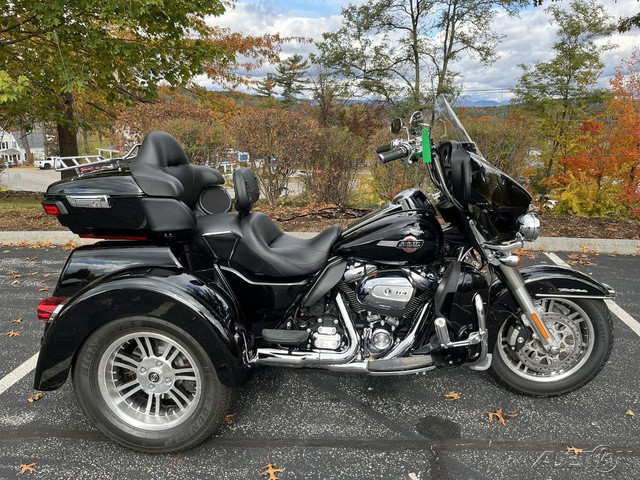 2023 Harley-Davidson® Tri Glide® Ultra Fully loaded and uninhibited.A long-haul touring trike with all the torque, style, premium infotainment and cargo space three wheels can hold.Features may include:Riders seeking a one-of-a-kind 3-wheel touring experienceBold styling with premium paint and Tomahawk™ wheelsTwin-Cooled™ Milwaukee-Eight 114 engine and premium techSADDLE UP IN COMFORTThe ultimate in two-up comfort for riders and passengers looking to log miles and experience new adventures.BATWING FAIRING & SPLITSTEAM AIR VENTDesigned to deliver smoother airflow and reduced head buffeting with a pressure-equalizing duct on the front.BOOM!™ BOX GTS INFOTAINMENT SYSTEMAn evolved interface experience that offers a contemporary look, feel and function, with exceptional durability and features designed specifically for motorcycling. Every element is optimized to enhance the rider’s interaction with the bike and connectivity with the world.TRUNK AND KING TOUR-PAK® STORAGETurn any ride into a weekend trip. The integrated trunk offers 4.4 cubic feet and 50 pounds of storage capacity, while the injection-molded Tour-Pak® luggage carrier adds an additional 2.4 cubic feet storage capacity, combined giving you 6.8 cubic feet of storage.