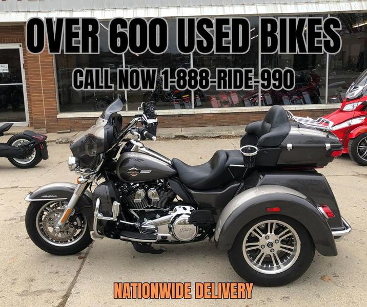 USED HARLEY TRI GLIDE FOR SALE WITH ONLY 12,340 MILES IN HARD TO FIND COLOR "GRAY HAZE AND SILVER FORTUNE"! THIS ONE IS A MUST-SEE! CLEAN, CLEAN, CLEAN, ALL STOCK, NO MODIFICATIONS, AND LOW, LOW MILES! DRIVER AND PASSENGER CUP HOLDERS, PHONE HOLDER, AIR RIDE, HIGHWAY PEGS, OVERSIZED L.E.D. SCREEN, BLUE TOOTH STEREO, NAVIGATION SYSTEM, CRUISE CONTROL, SECURITY SYSTEM, AND MORE! JUST SERVICED AT DEALERSHIP, INSPECTED, ALL FLUIDS CHANGED, RUNS STRONG, EVERYTHING WORKS, NEEDS NOTHING! BUY WITH CONFIDENCE! CERTIFIED AND WARRANTY AVAILABLE! SOLD NEW FOR OVER $40,000. WHY BUY NEW? SAVE OVER $10,000! THIS ONE IS CLEAN! THIS ONE IS A DEAL!