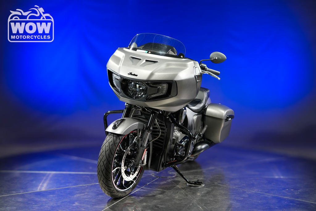 The 2023 Indian Challenger Dark Horse is a bold, high-performance bagger built for riders who want aggressive style and serious touring power. Powered by Indian’s liquid-cooled PowerPlus 108 V-Twin, this machine delivers impressive horsepower and smooth acceleration, making it one of the most performance-focused touring motorcycles on the road. Its frame-mounted fairing and aerodynamic design provide excellent wind protection and stability at highway speeds, while the premium adjustable rear suspension and inverted front forks deliver confident handling whether you're cruising long distances or carving through curves. The Dark Horse trim stands out with its blackout styling, giving the bike a stealthy, muscular look that pairs perfectly with its performance DNA. Integrated hard saddlebags provide plenty of storage for weekend trips or extended rides, and the modern ride modes allow you to tailor the bike’s power delivery to match your riding style. Technology is another highlight, featuring a full-color touchscreen infotainment system with navigation, Bluetooth connectivity, and premium audio controls right at your fingertips. Keyless ignition, cruise control, and advanced rider-assist features add comfort and convenience for every ride. If you're looking for a bagger that blends aggressive styling, modern technology, and championship-level performance, the 2023 Indian Challenger Dark Horse delivers an unforgettable riding experience