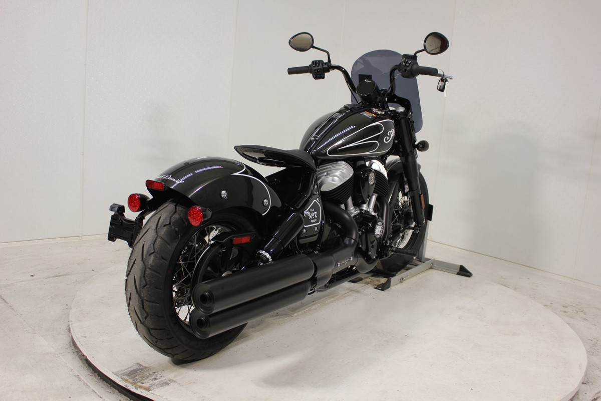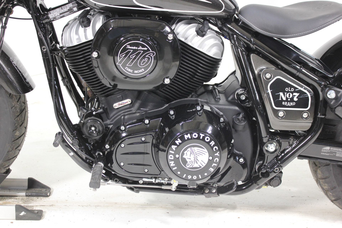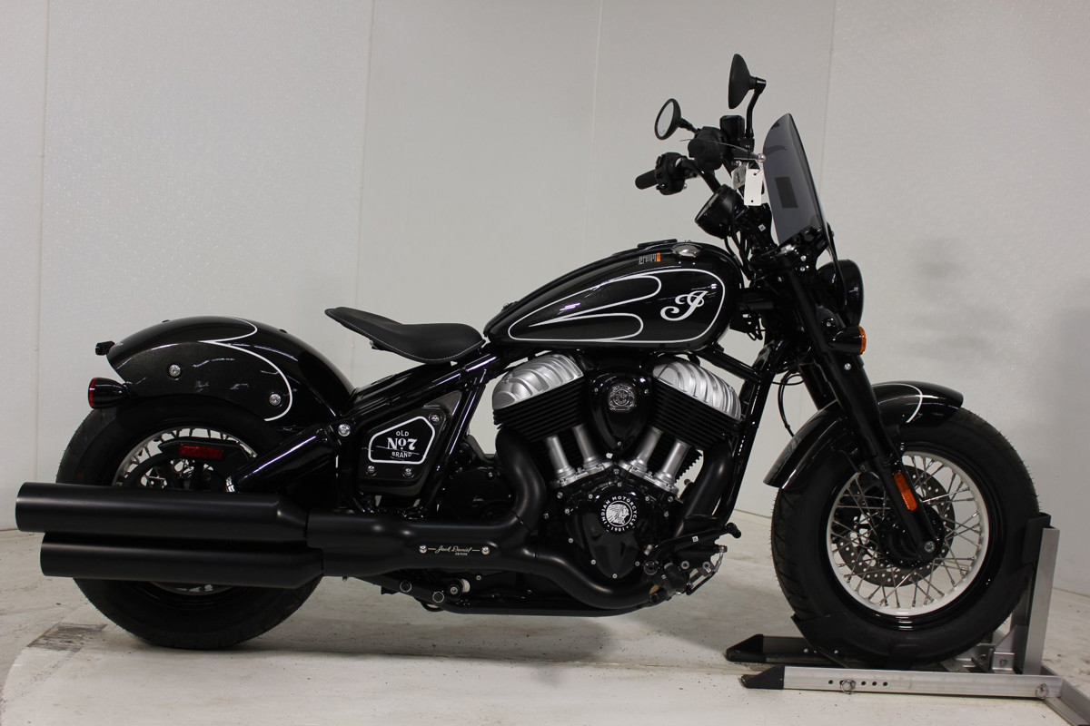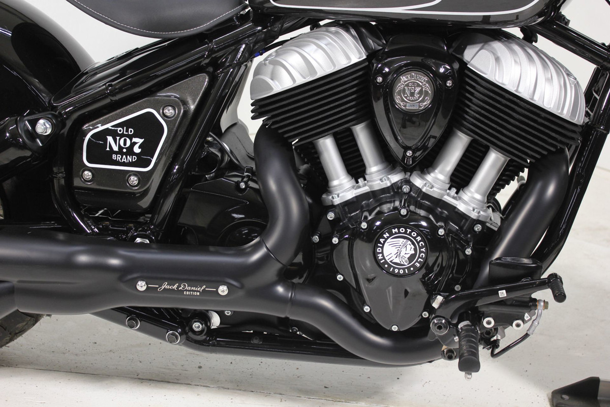 Blacked out finishes, more power, and more ride-enhancing tech giving you a bike with the most attitude. Jack Daniel's Limited Edition Indian Chief Bobber Dark Horse, Highly exclusive. Every bike is hand painted and this is the one where there is Jack Daniel's Old No 7 in the Graphite Paint. Inspired by from the prohibition era, this bike comes with simple steel tubing frame, solo seat and engine finished with a raw look that all had in the earlier days. Air cooled Thunderstroke 116 with 120 ft-lbs of low end torque and easily modified for power upgrades while 3 throttle map options allow you to change the throttle feel for varying conditions. Detachable wind screen by Klock Werks helps keep he wind off your chest, 4 inch touch screen, LED adaptive headlight providing the rider technology and the authenictic