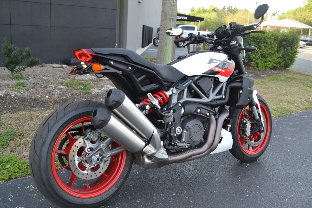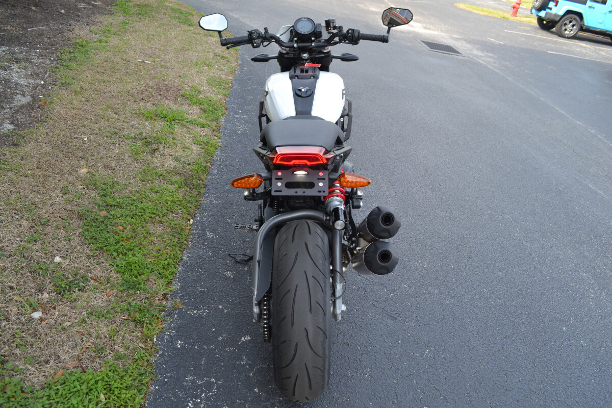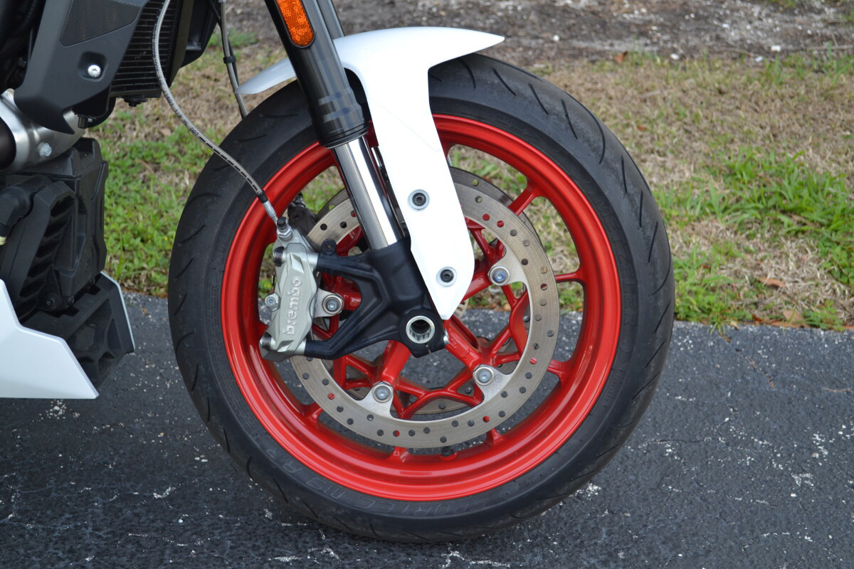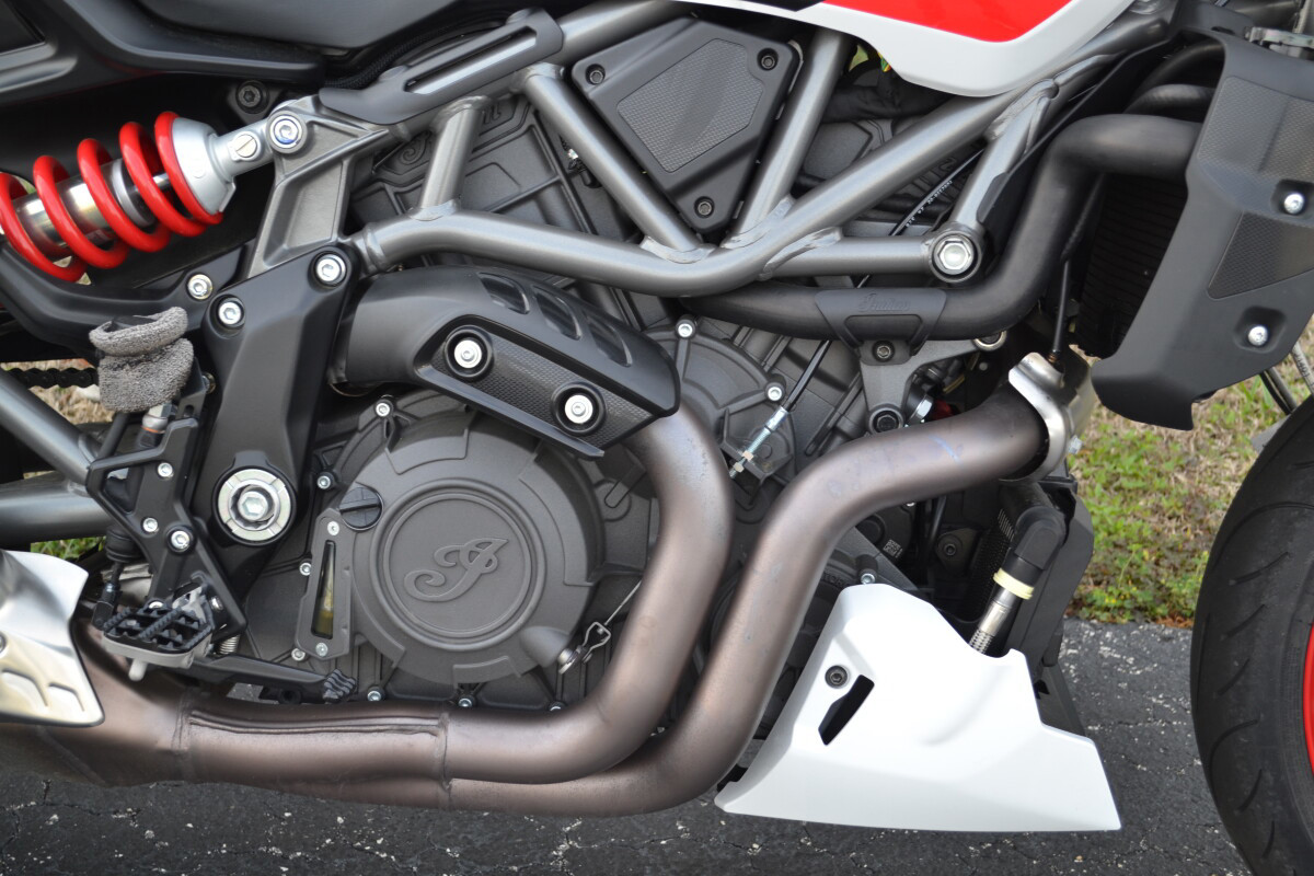 STOPPING POWER Fully adjustable 43mm upside down front fork and single, exposed rear shock make the FTR Sport stand out in the crowd. Massive Brembo 4-piston mono block calipers grab dual 320mm rotors and are specifically tuned for incredible control and braking power. Stoppies are optional, and only two fingers away if you’re so inclined.